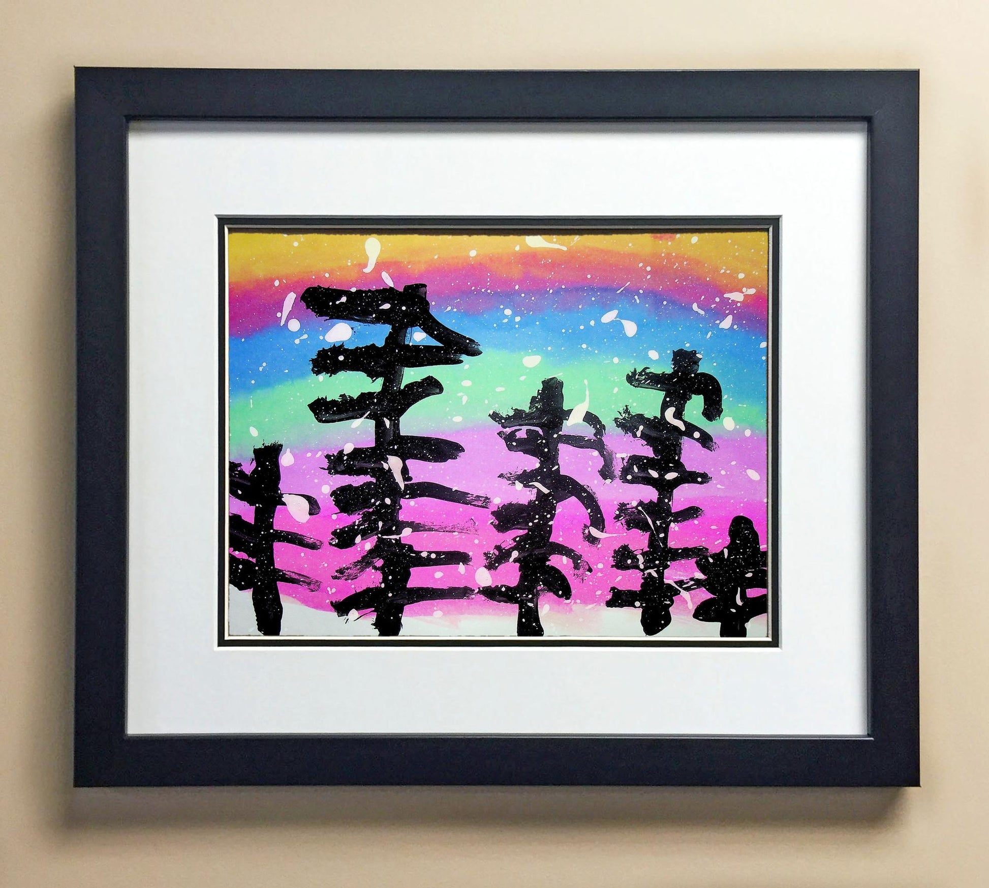 Included with the purchase is the Students Artwork, Frame, double matboard, shatter proof plexiglass, and a ready to hang backerboard with turnbuttons