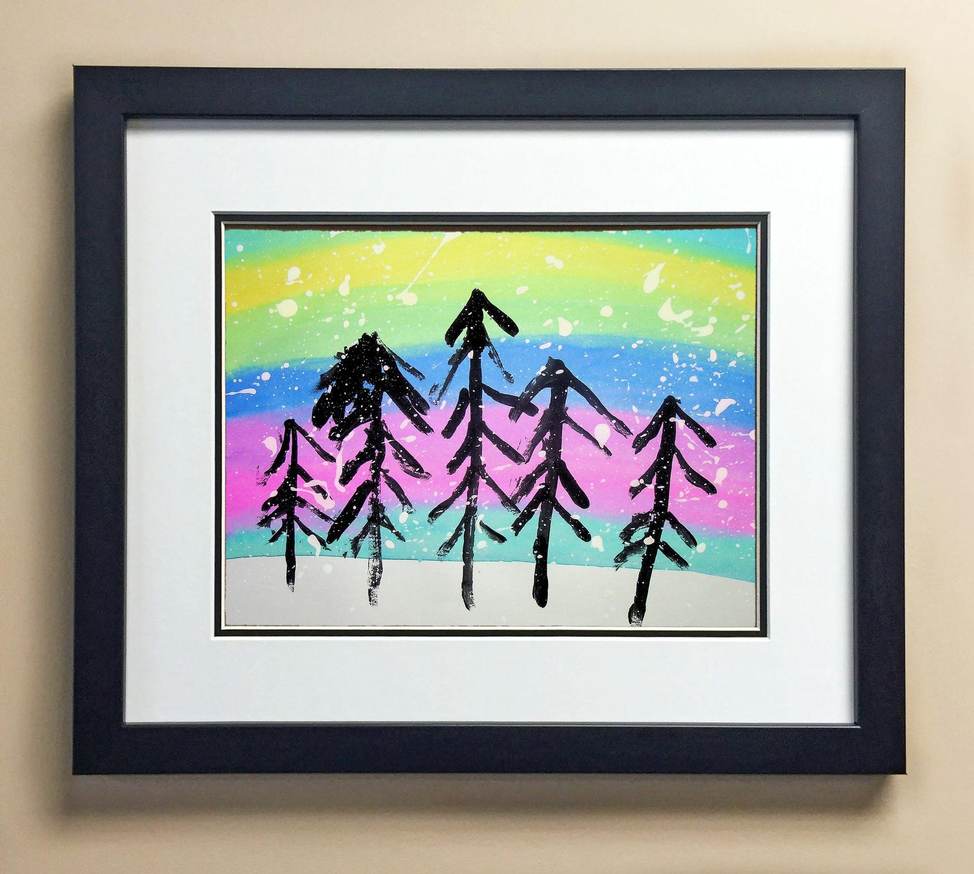 Included with the purchase is the Students Artwork, Frame, double matboard, shatter proof plexiglass, and a ready to hang backerboard with turnbuttons