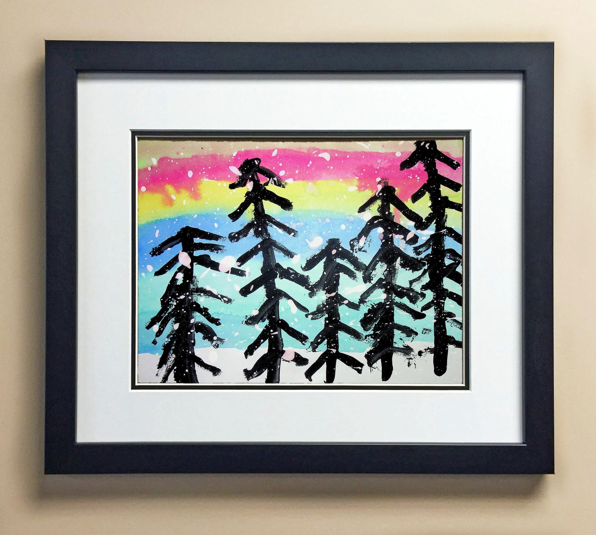 Included with the purchase is the Students Artwork, Frame, double matboard, shatter proof plexiglass, and a ready to hang backerboard with turnbuttons