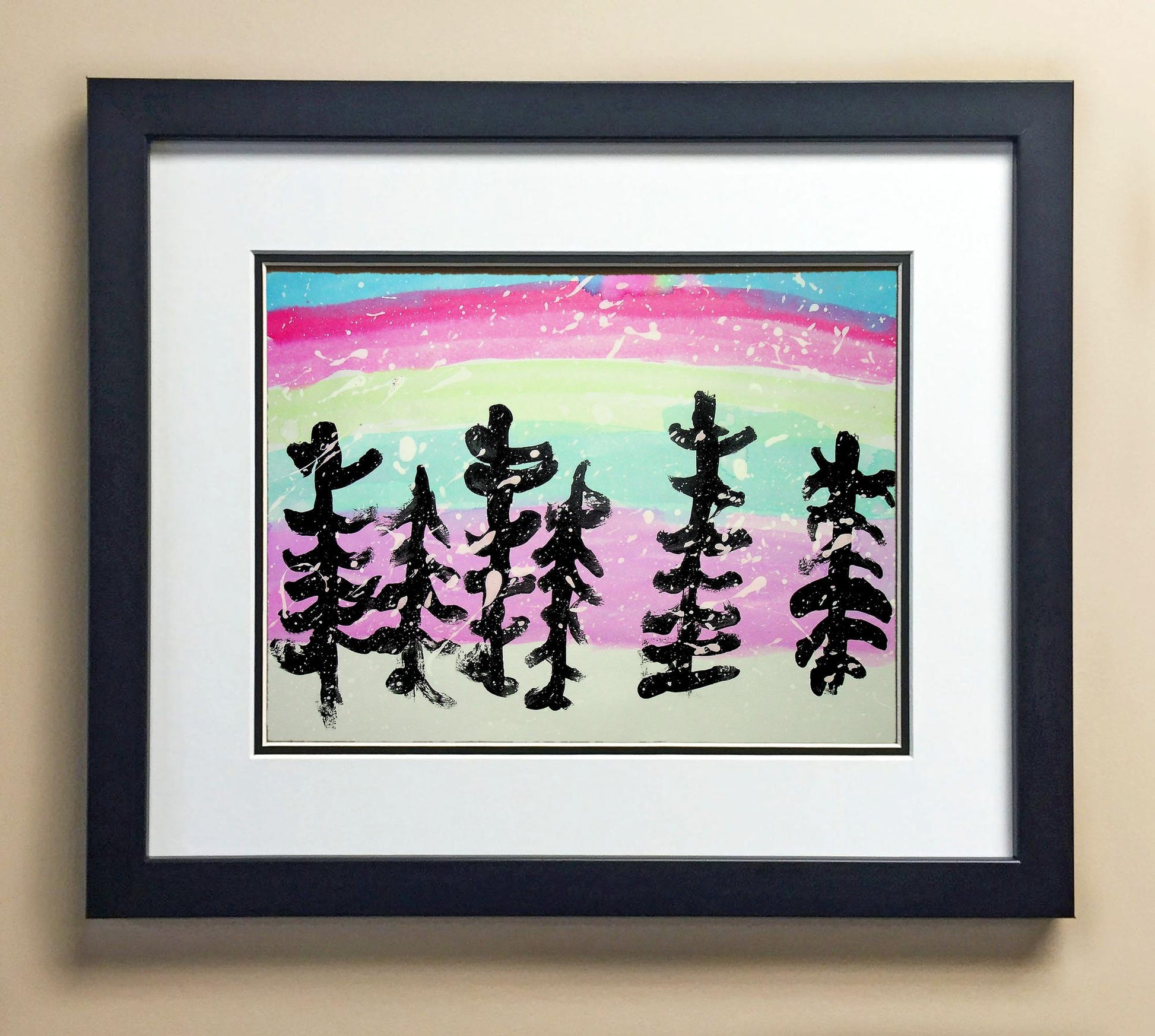 Included with the purchase is the Students Artwork, Frame, double matboard, shatter proof plexiglass, and a ready to hang backerboard with turnbuttons