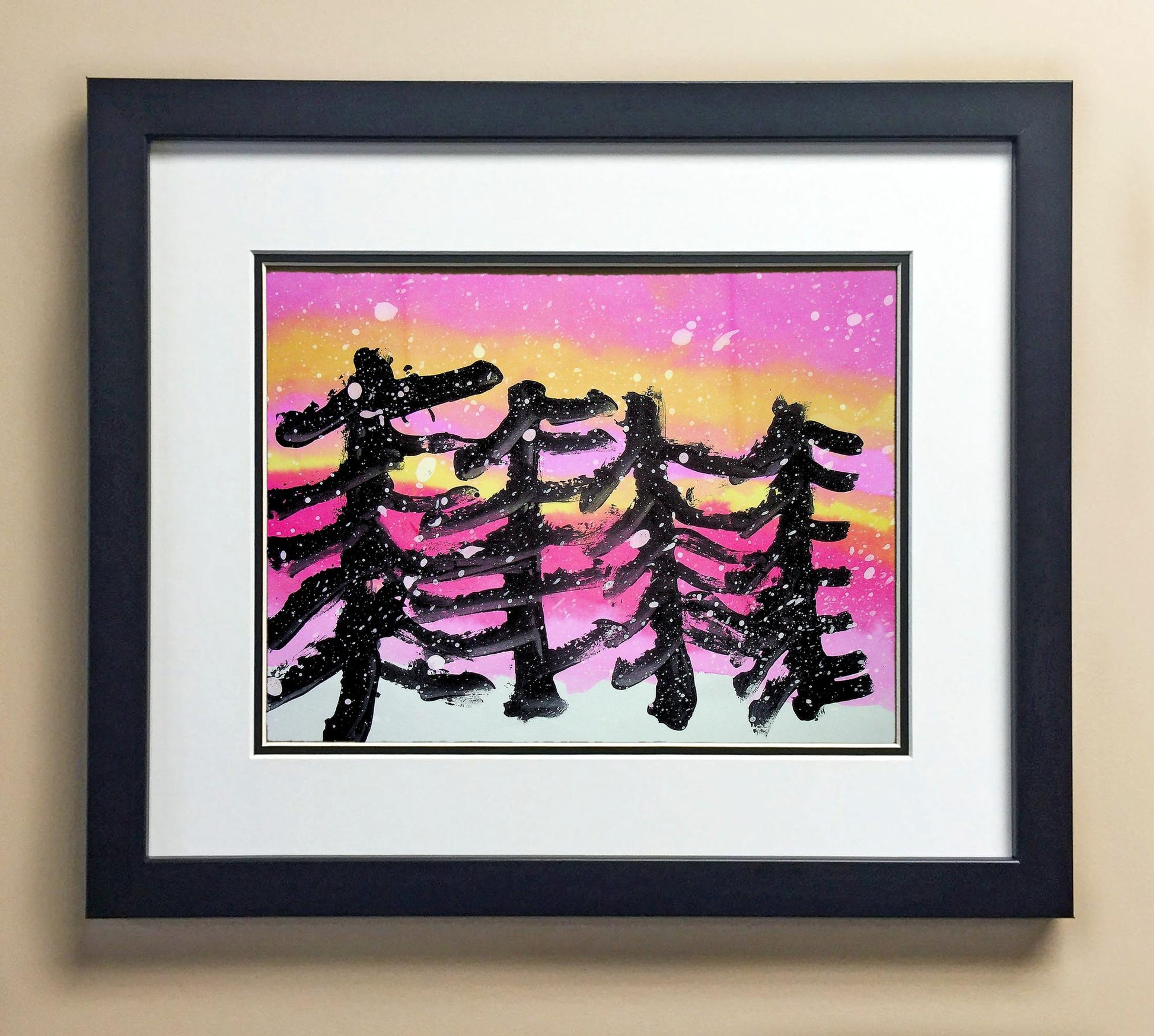 Included with the purchase is the Students Artwork, Frame, double matboard, shatter proof plexiglass, and a ready to hang backerboard with turnbuttons