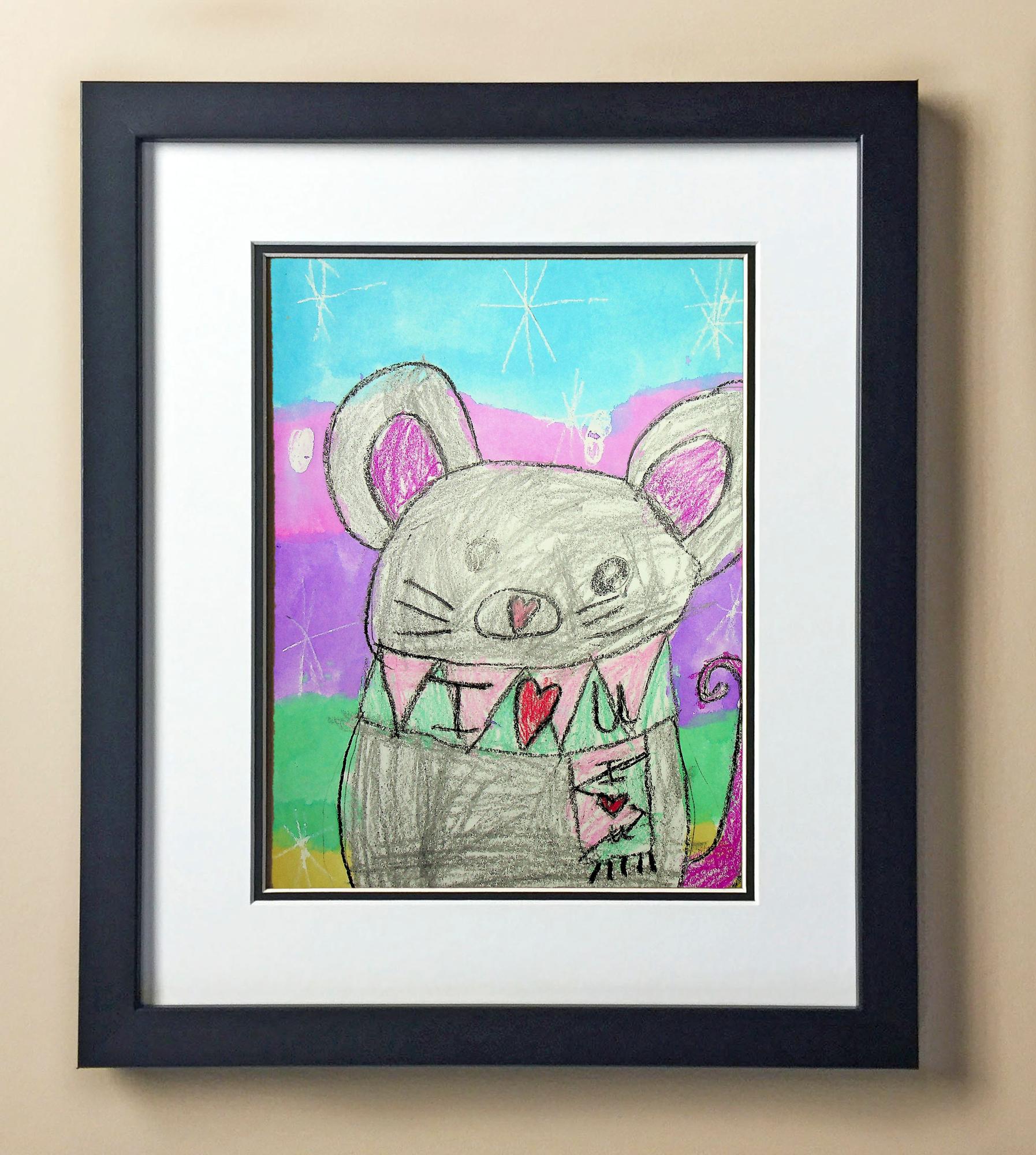 Included with the purchase is the Students Artwork, Frame, double matboard, shatter proof plexiglass, and a ready to hang backerboard with turnbuttons