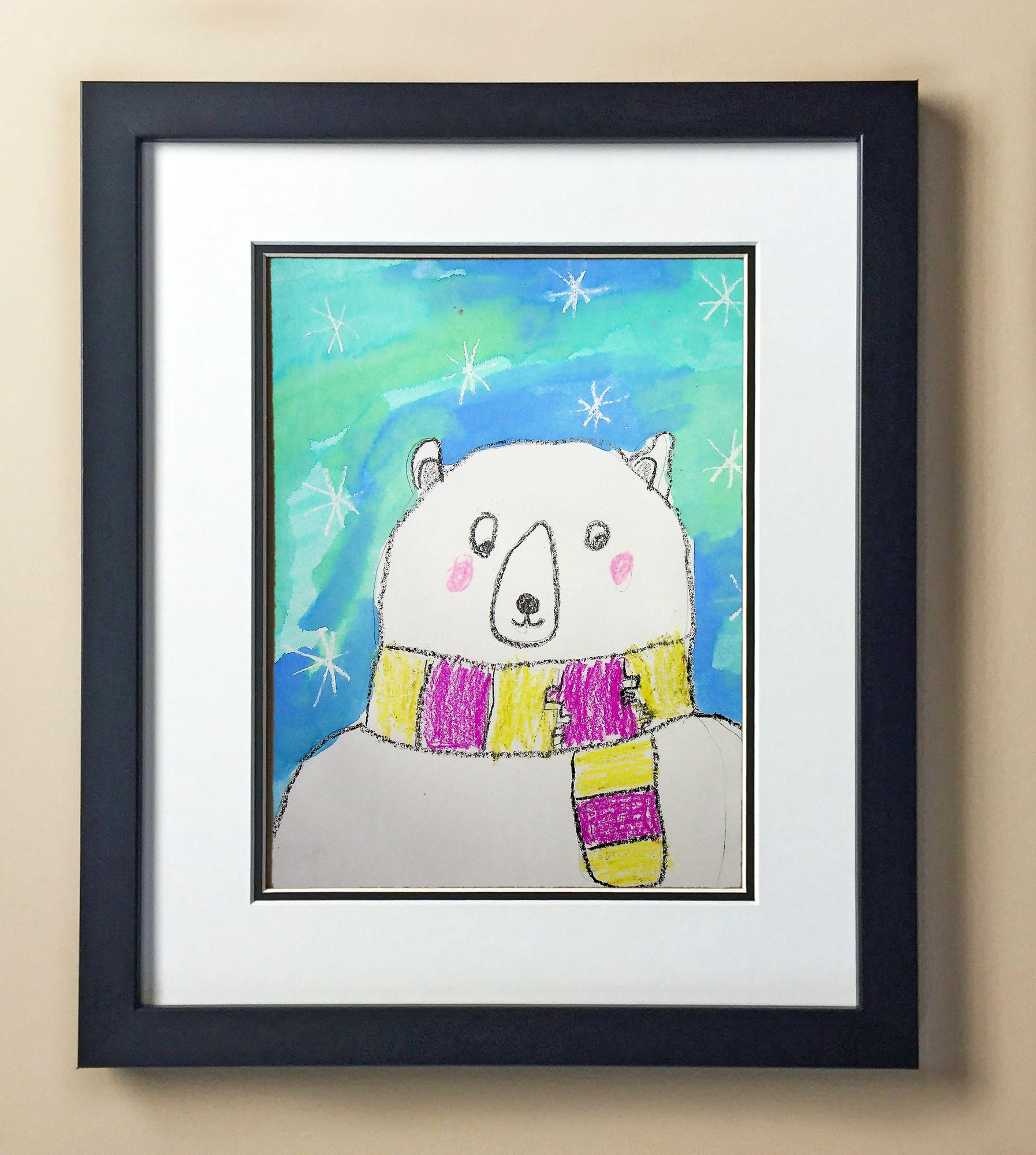 Included with the purchase is the Students Artwork, Frame, double matboard, shatter proof plexiglass, and a ready to hang backerboard with turnbuttons
