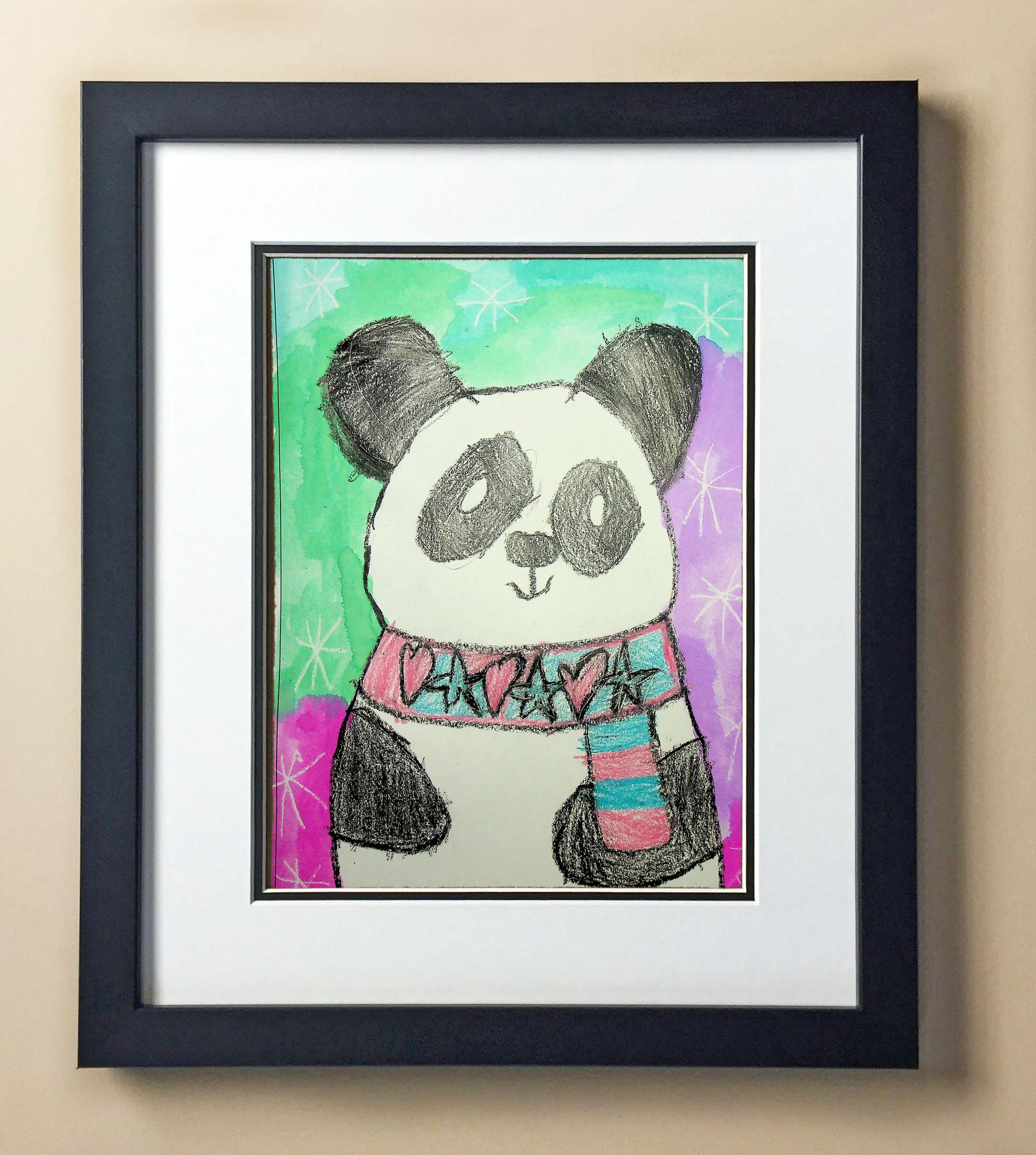 Included with the purchase is the Students Artwork, Frame, double matboard, shatter proof plexiglass, and a ready to hang backerboard with turnbuttons