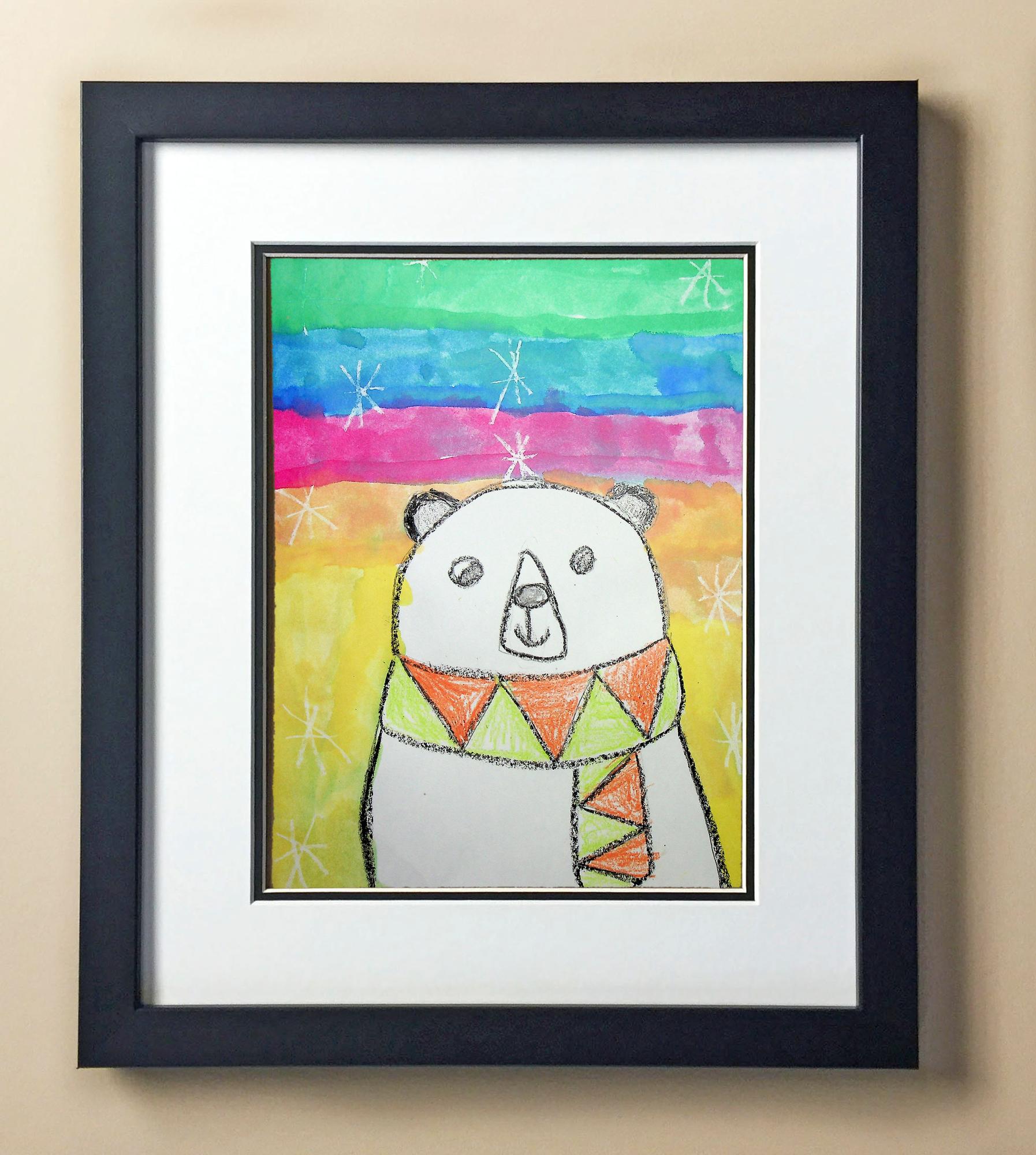 Included with the purchase is the Students Artwork, Frame, double matboard, shatter proof plexiglass, and a ready to hang backerboard with turnbuttons