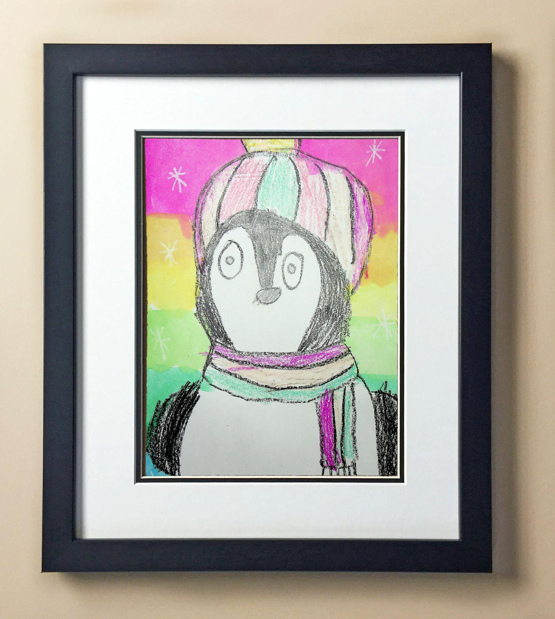 Included with the purchase is the Students Artwork, Frame, double matboard, shatter proof plexiglass, and a ready to hang backerboard with turnbuttons