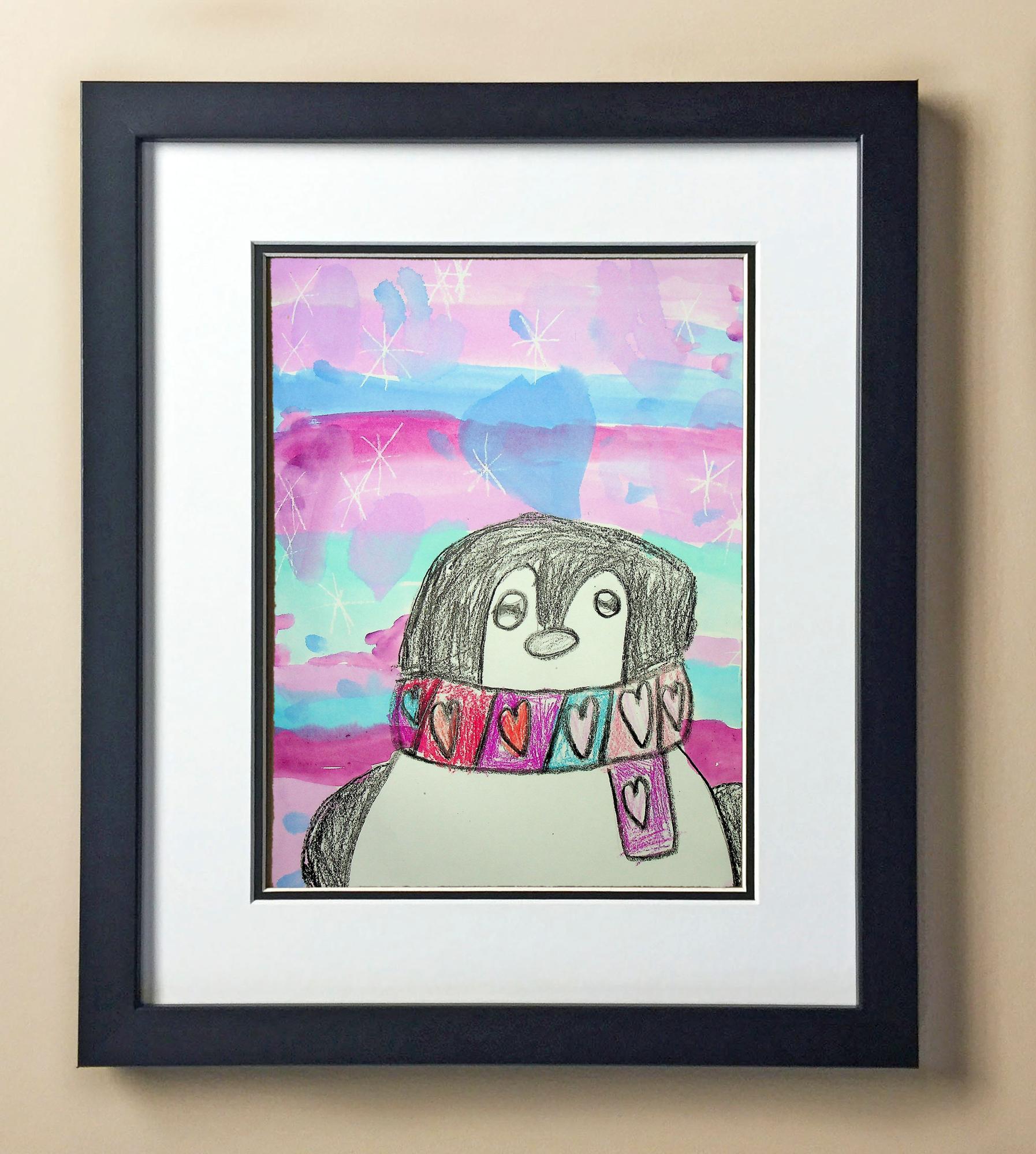 Included with the purchase is the Students Artwork, Frame, double matboard, shatter proof plexiglass, and a ready to hang backerboard with turnbuttons
