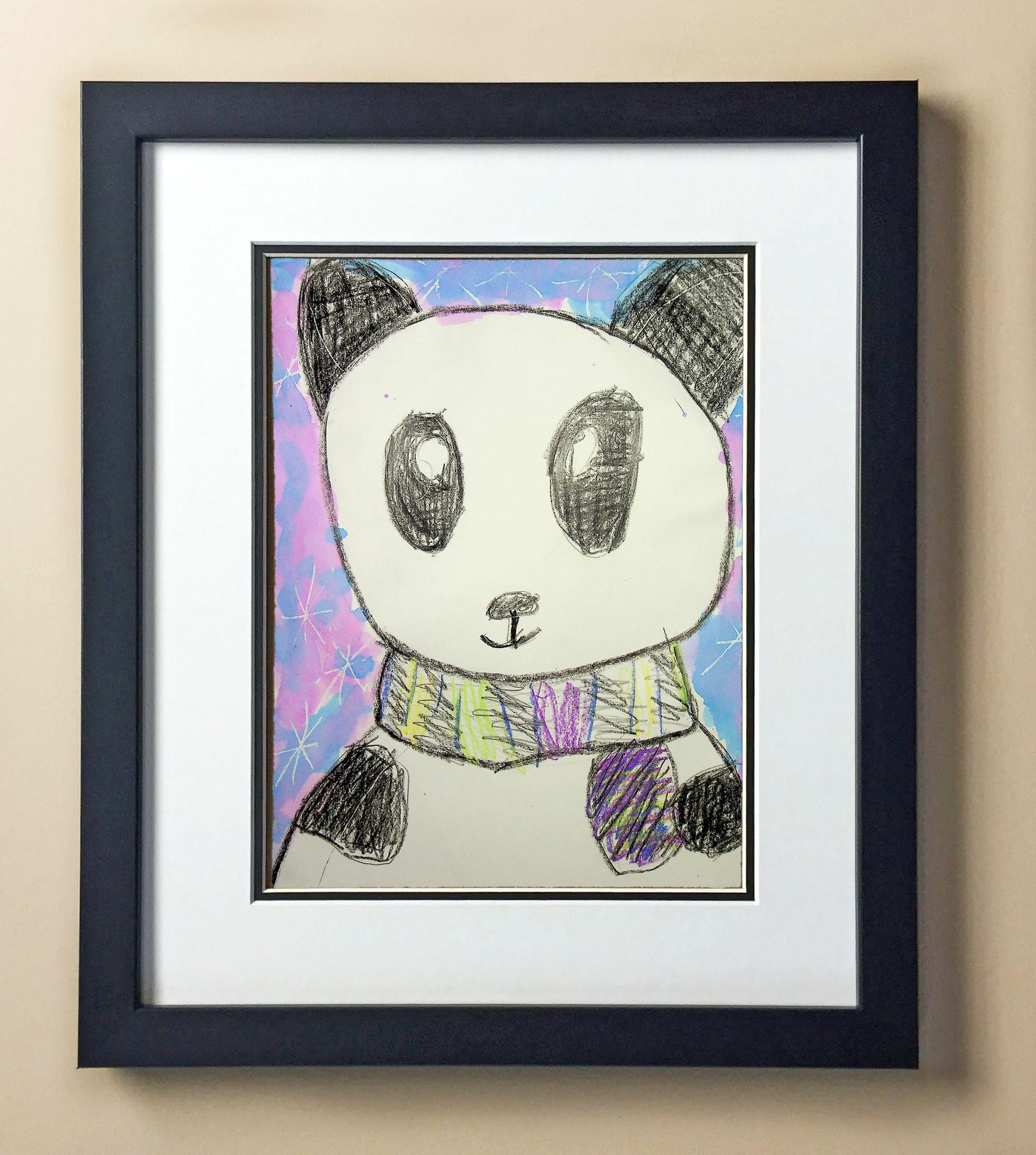 Included with the purchase is the Students Artwork, Frame, double matboard, shatter proof plexiglass, and a ready to hang backerboard with turnbuttons