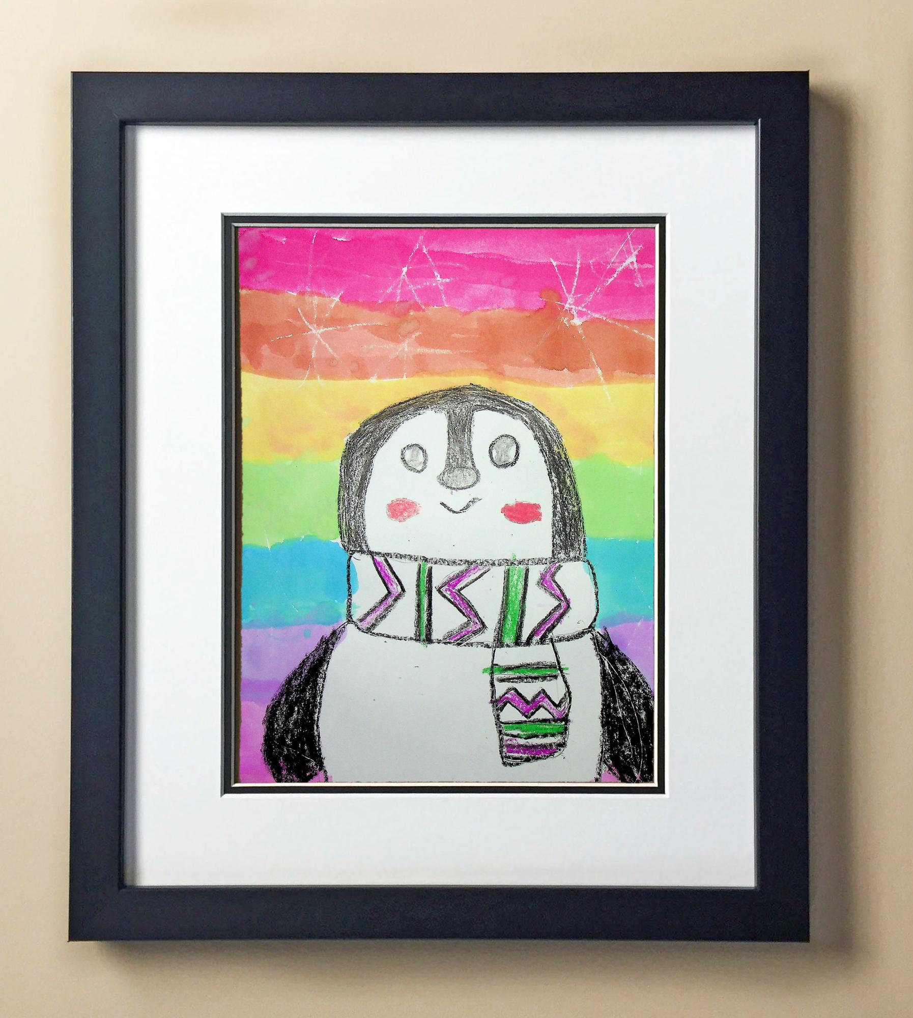 Included with the purchase is the Students Artwork, Frame, double matboard, shatter proof plexiglass, and a ready to hang backerboard with turnbuttons