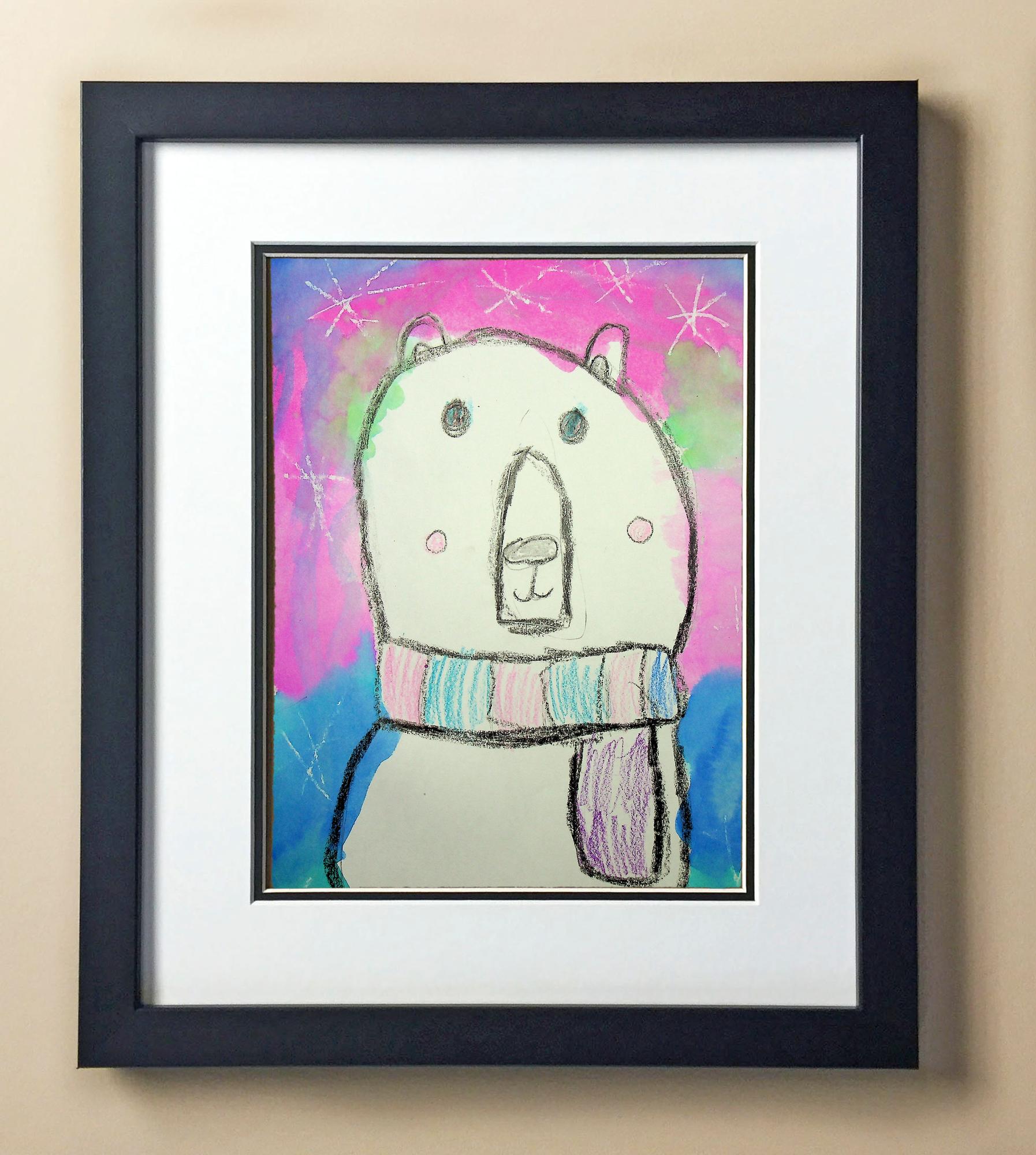 Included with the purchase is the Students Artwork, Frame, double matboard, shatter proof plexiglass, and a ready to hang backerboard with turnbuttons