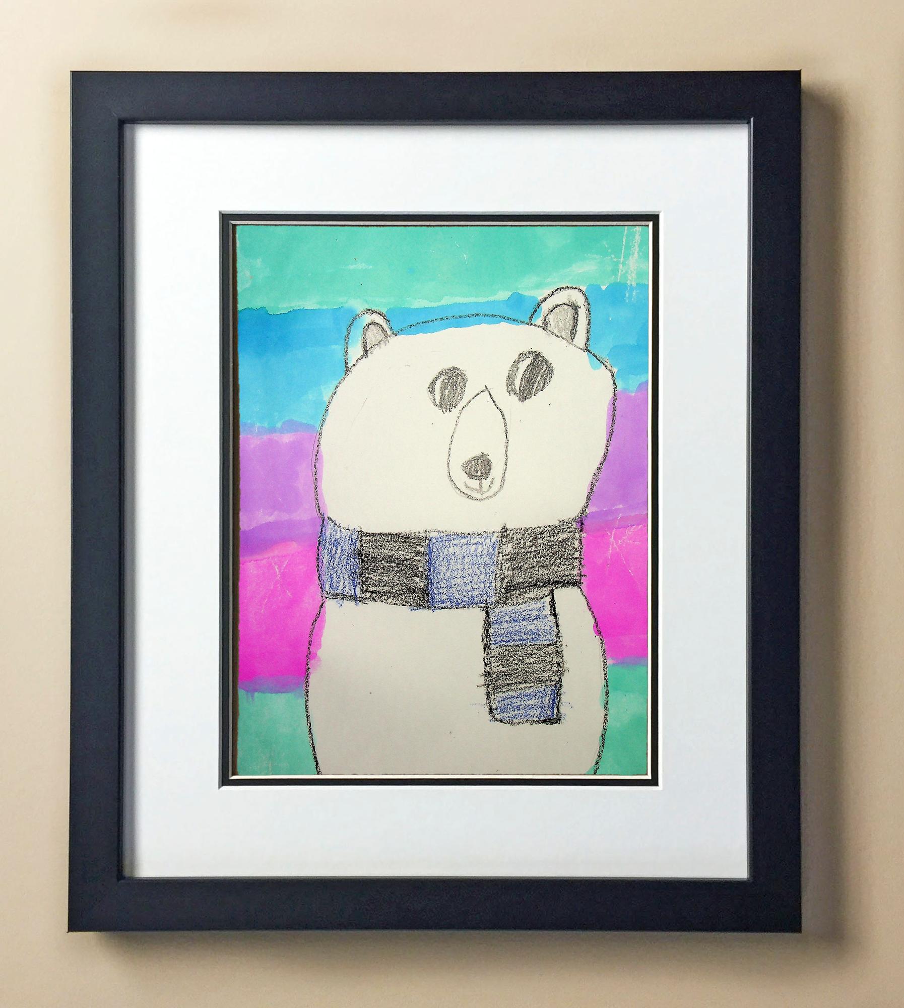 Included with the purchase is the Students Artwork, Frame, double matboard, shatter proof plexiglass, and a ready to hang backerboard with turnbuttons