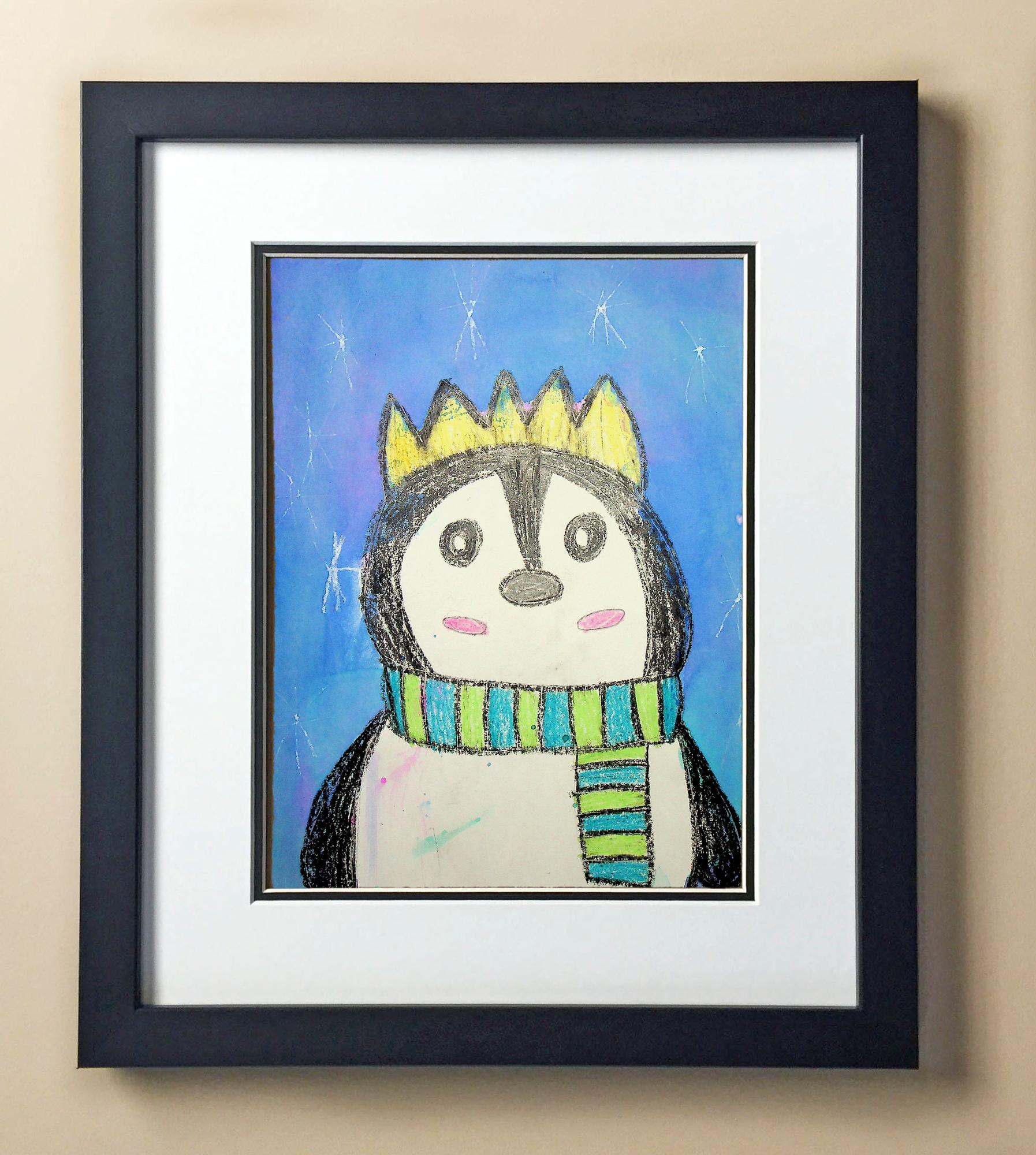 Included with the purchase is the Students Artwork, Frame, double matboard, shatter proof plexiglass, and a ready to hang backerboard with turnbuttons