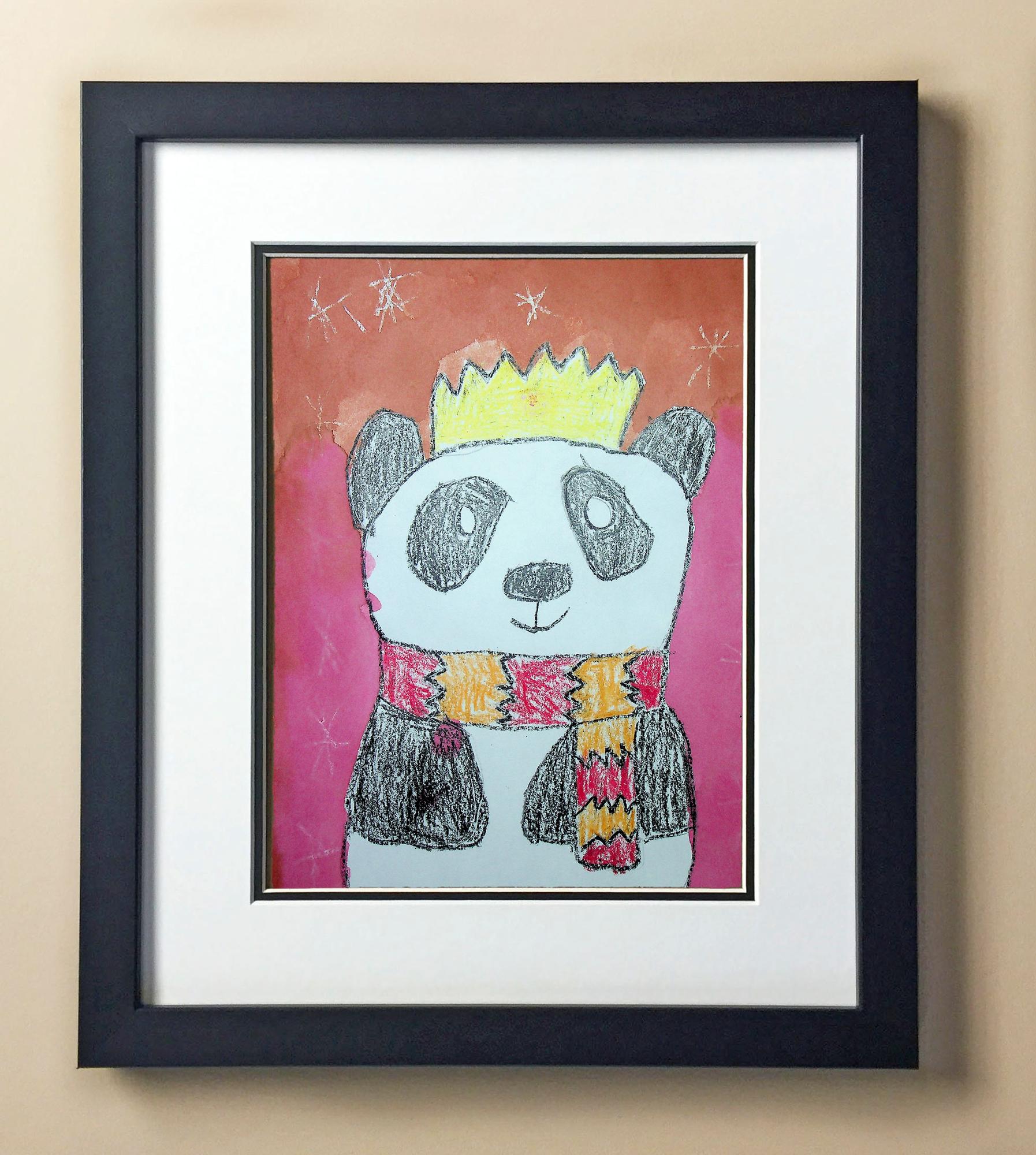 Included with the purchase is the Students Artwork, Frame, double matboard, shatter proof plexiglass, and a ready to hang backerboard with turnbuttons