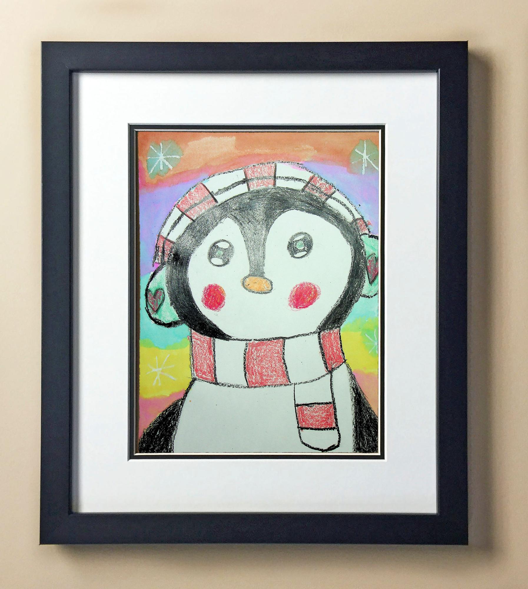 Included with the purchase is the Students Artwork, Frame, double matboard, shatter proof plexiglass, and a ready to hang backerboard with turnbuttons