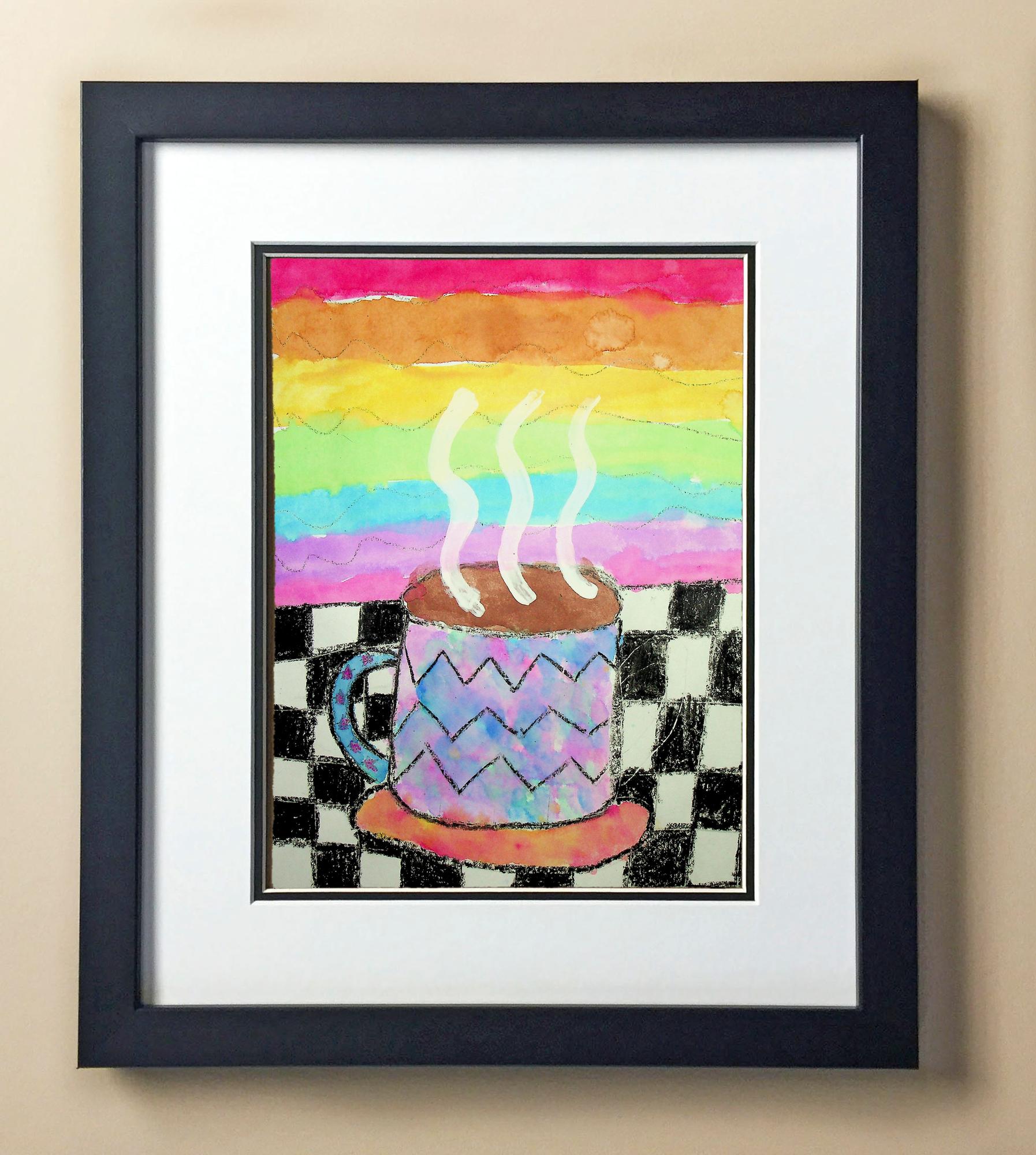 Included with the purchase is the Students Artwork, Frame, double matboard, shatter proof plexiglass, and a ready to hang backerboard with turnbuttons