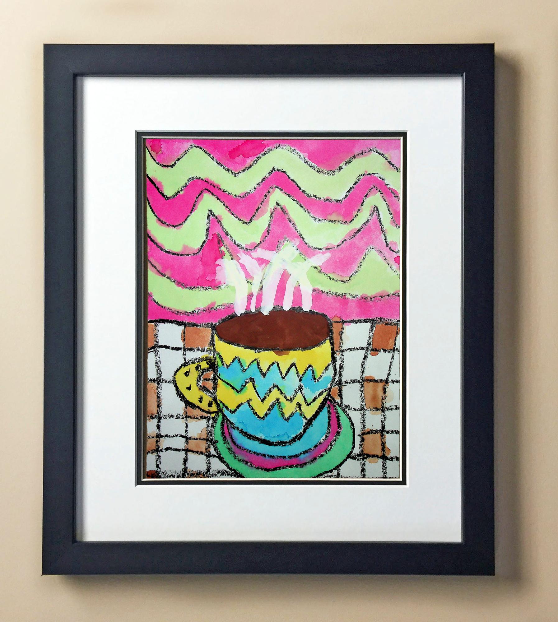 Included with the purchase is the Students Artwork, Frame, double matboard, shatter proof plexiglass, and a ready to hang backerboard with turnbuttons