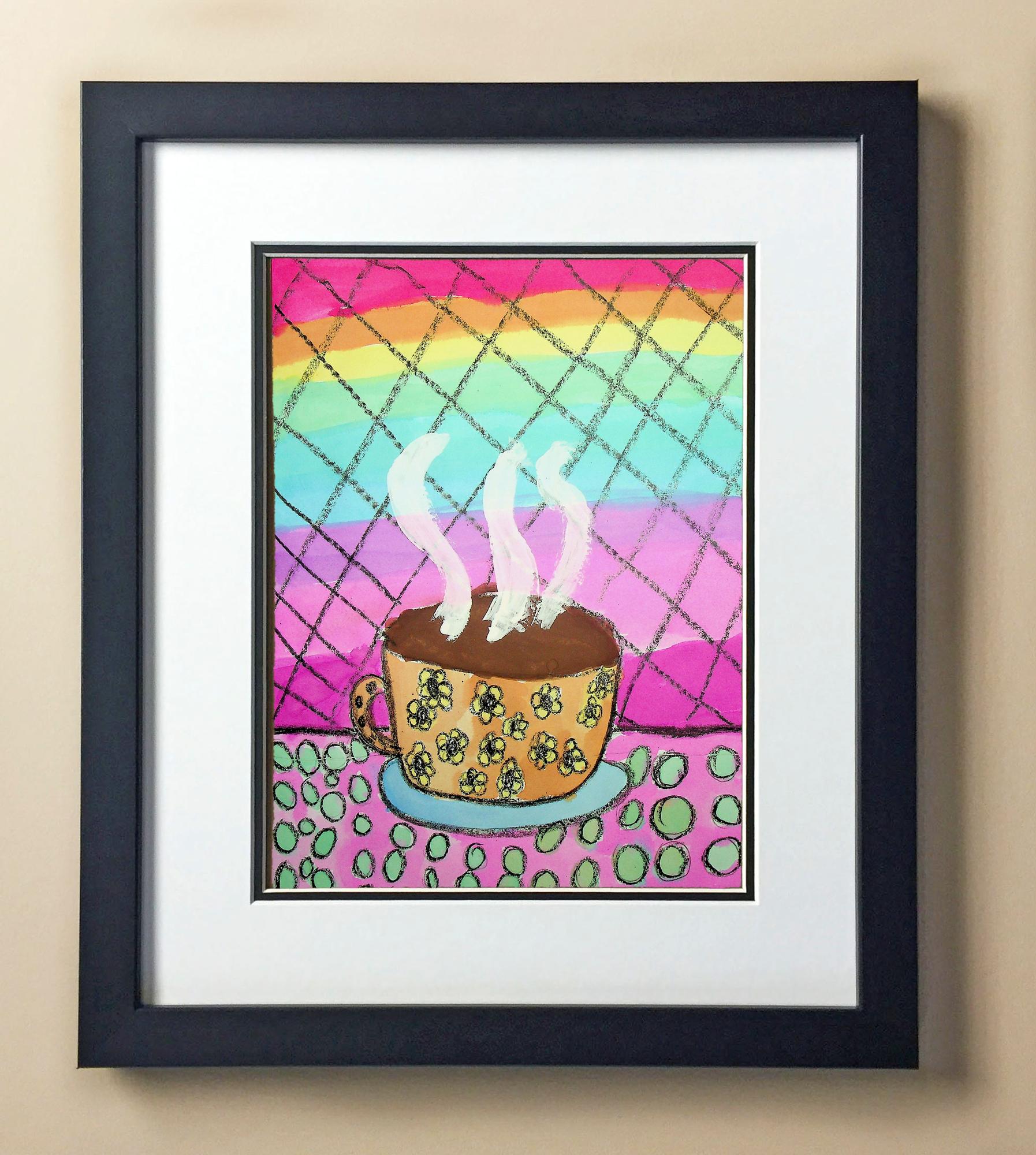 Included with the purchase is the Students Artwork, Frame, double matboard, shatter proof plexiglass, and a ready to hang backerboard with turnbuttons