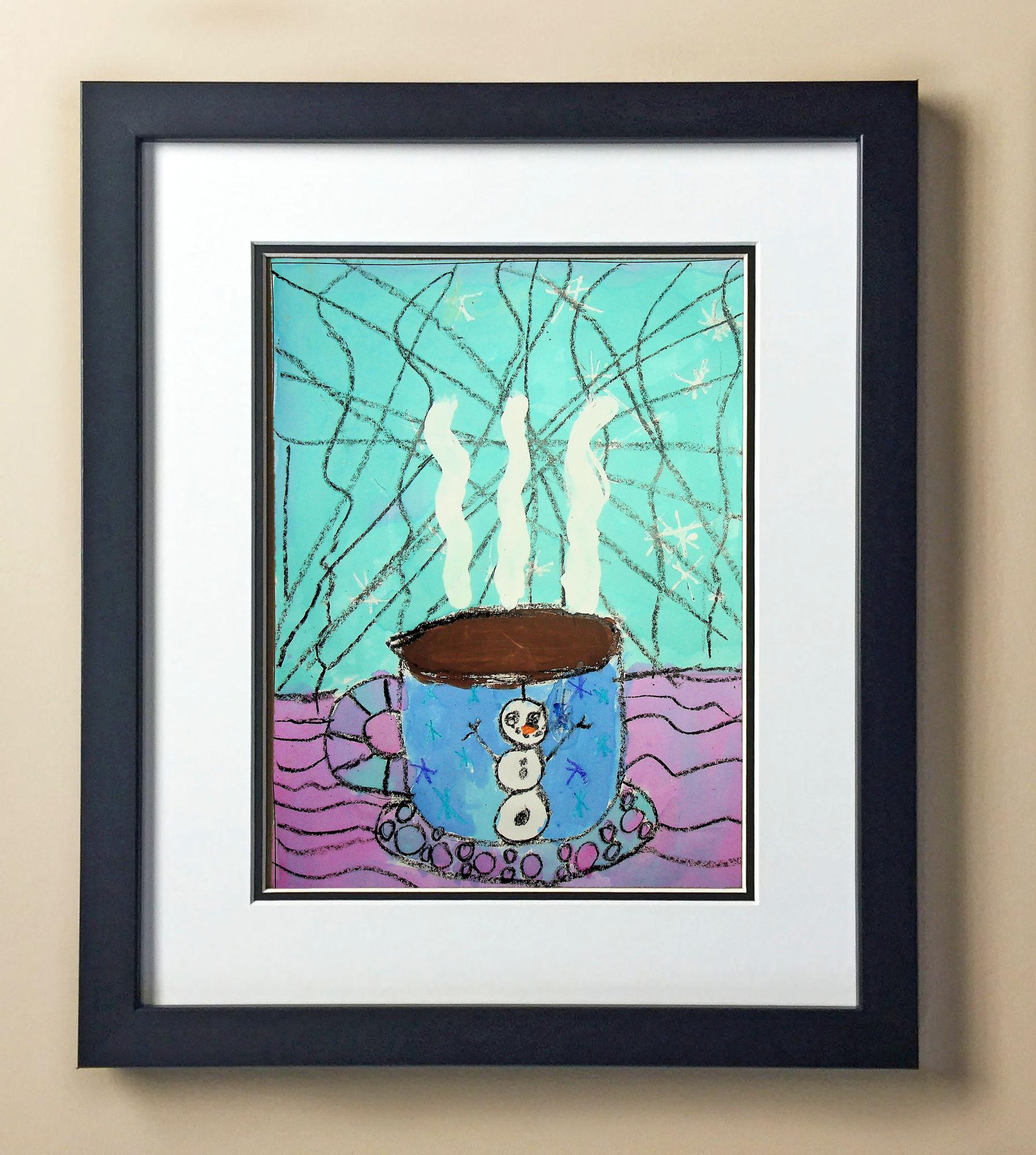 Included with the purchase is the Students Artwork, Frame, double matboard, shatter proof plexiglass, and a ready to hang backerboard with turnbuttons