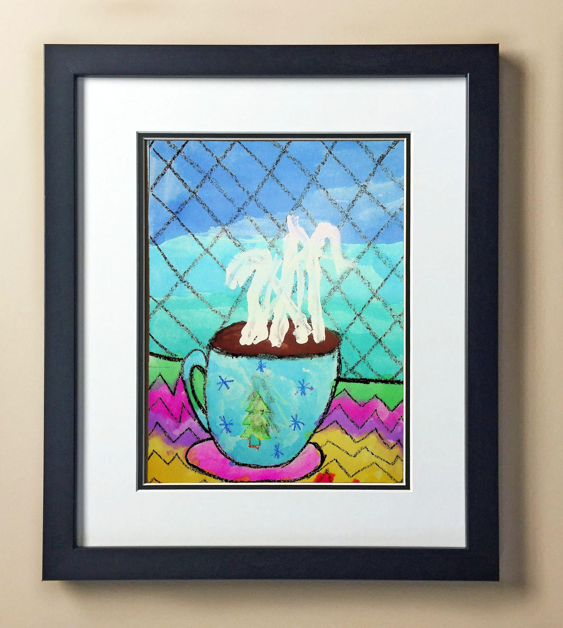 Included with the purchase is the Students Artwork, Frame, double matboard, shatter proof plexiglass, and a ready to hang backerboard with turnbuttons