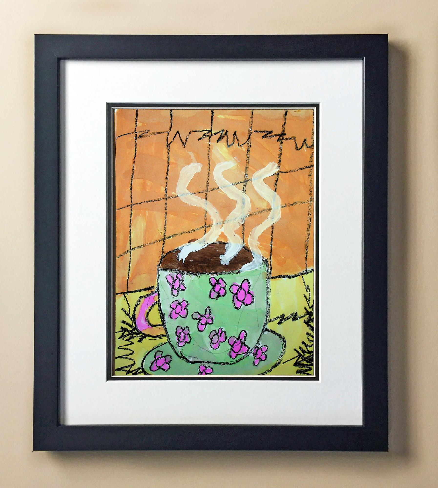 Included with the purchase is the Students Artwork, Frame, double matboard, shatter proof plexiglass, and a ready to hang backerboard with turnbuttons