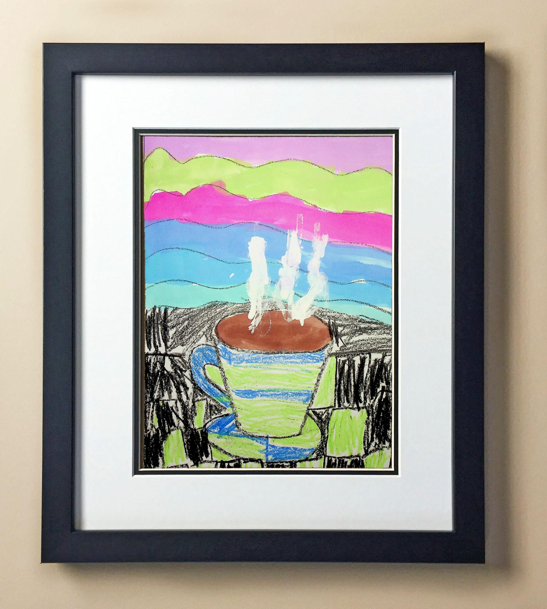 Included with the purchase is the Students Artwork, Frame, double matboard, shatter proof plexiglass, and a ready to hang backerboard with turnbuttons