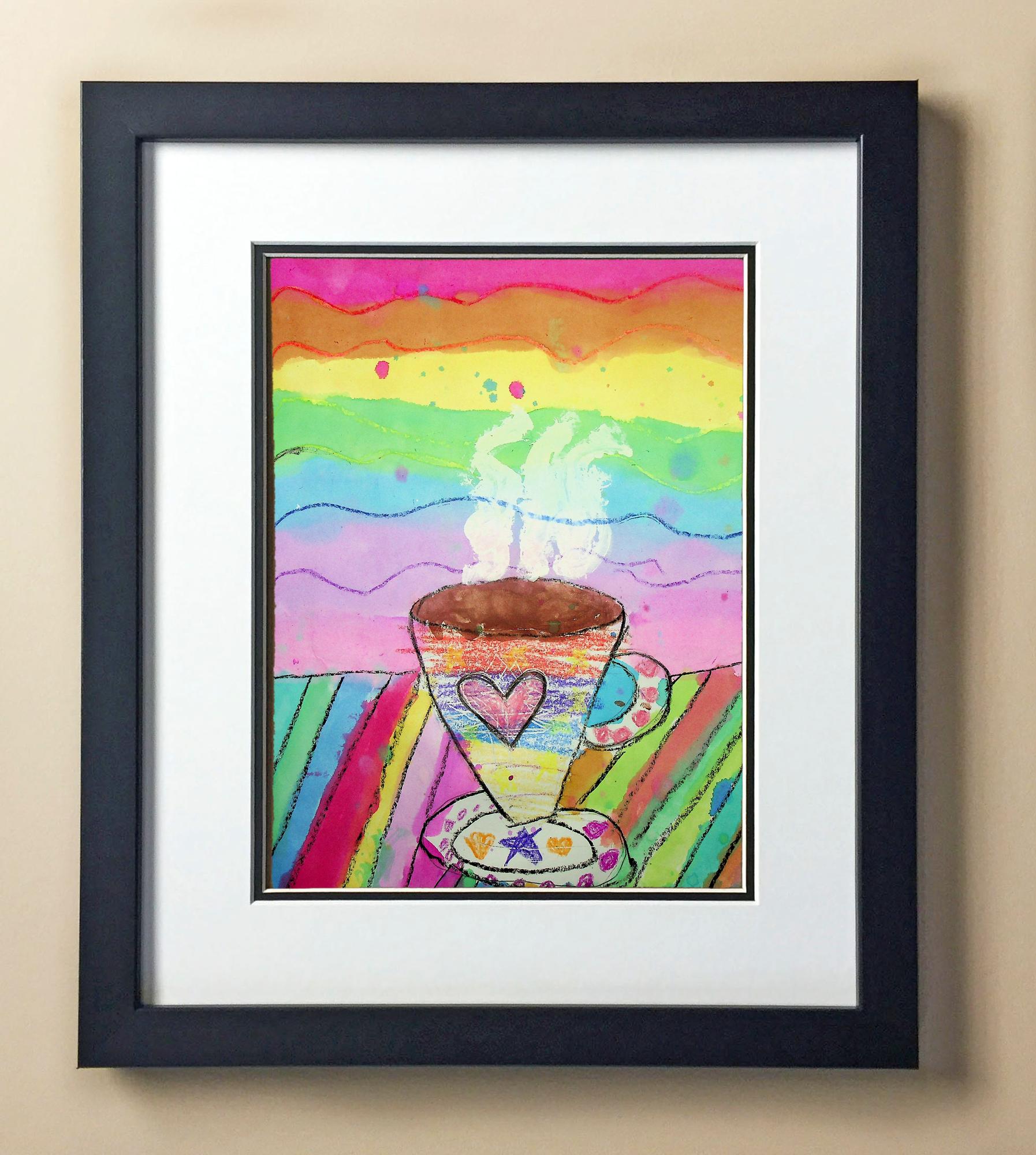Included with the purchase is the Students Artwork, Frame, double matboard, shatter proof plexiglass, and a ready to hang backerboard with turnbuttons
