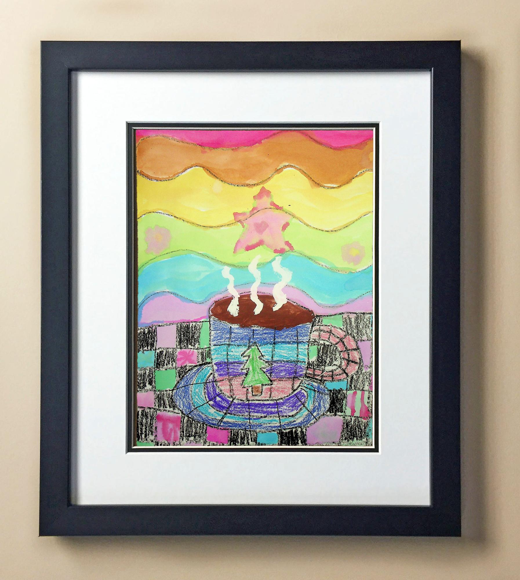 Included with the purchase is the Students Artwork, Frame, double matboard, shatter proof plexiglass, and a ready to hang backerboard with turnbuttons