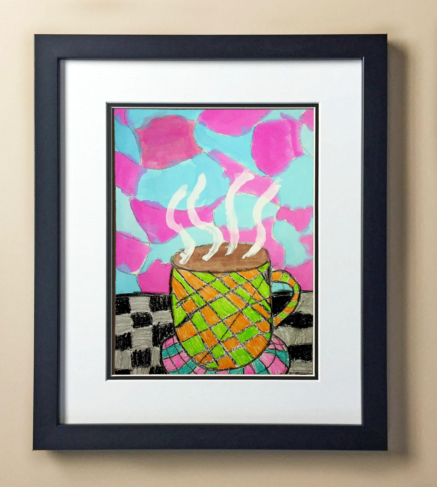 Included with the purchase is the Students Artwork, Frame, double matboard, shatter proof plexiglass, and a ready to hang backerboard with turnbuttons