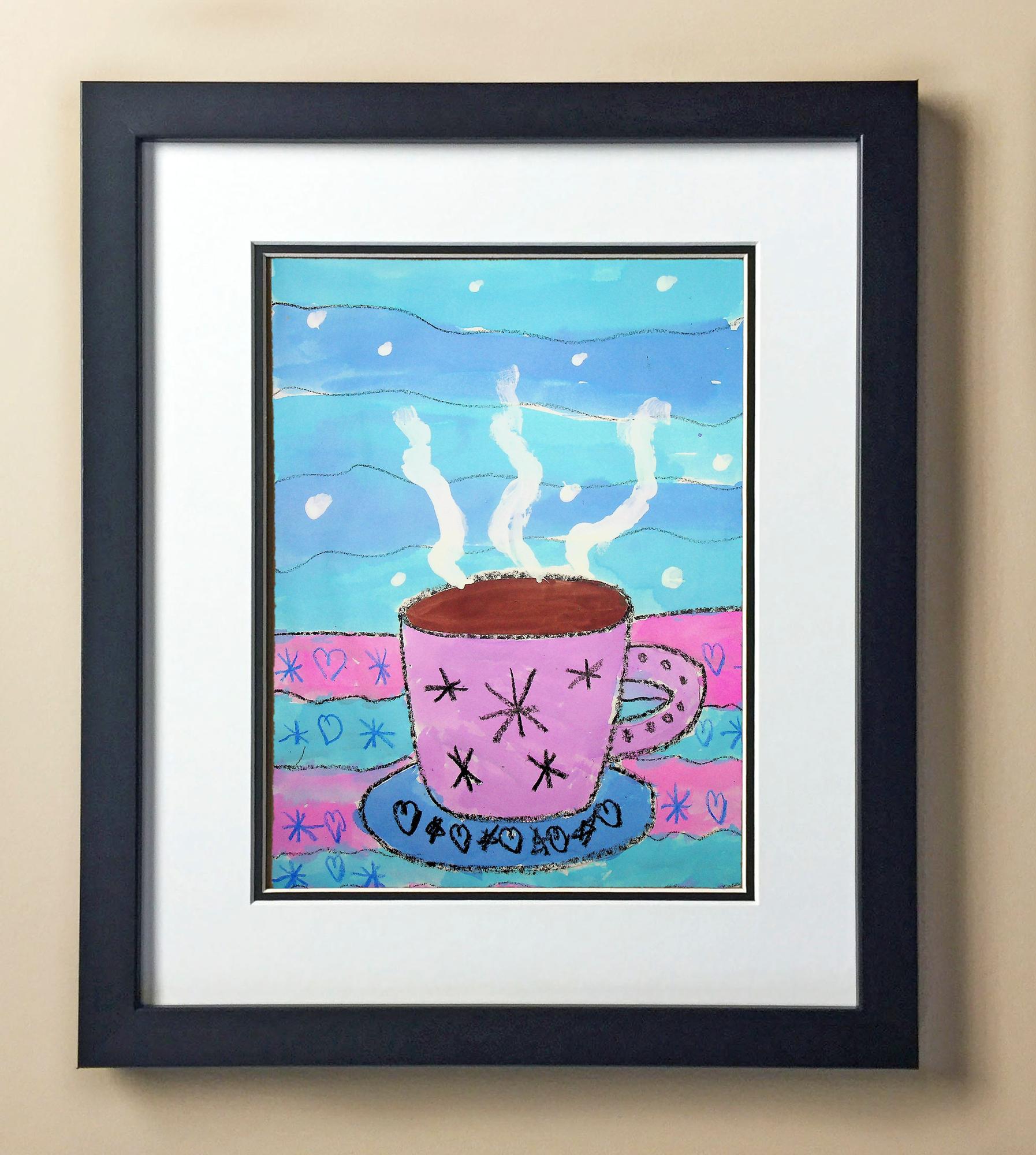 Included with the purchase is the Students Artwork, Frame, double matboard, shatter proof plexiglass, and a ready to hang backerboard with turnbuttons