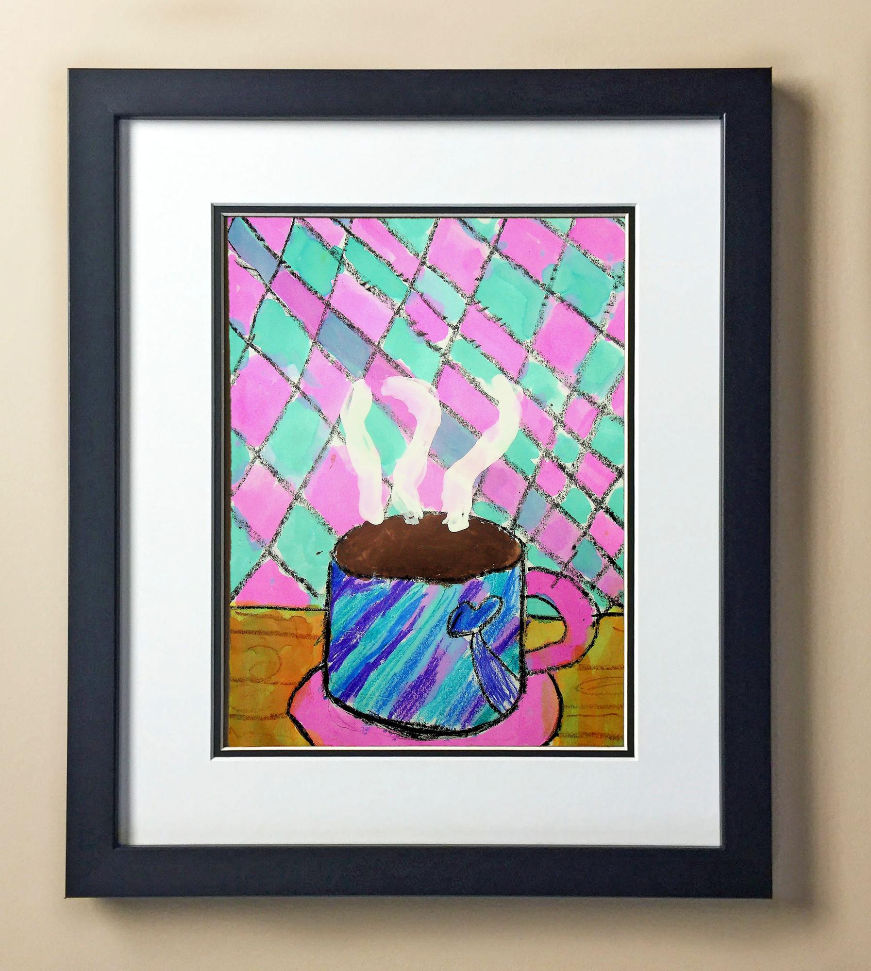 Included with the purchase is the Students Artwork, Frame, double matboard, shatter proof plexiglass, and a ready to hang backerboard with turnbuttons