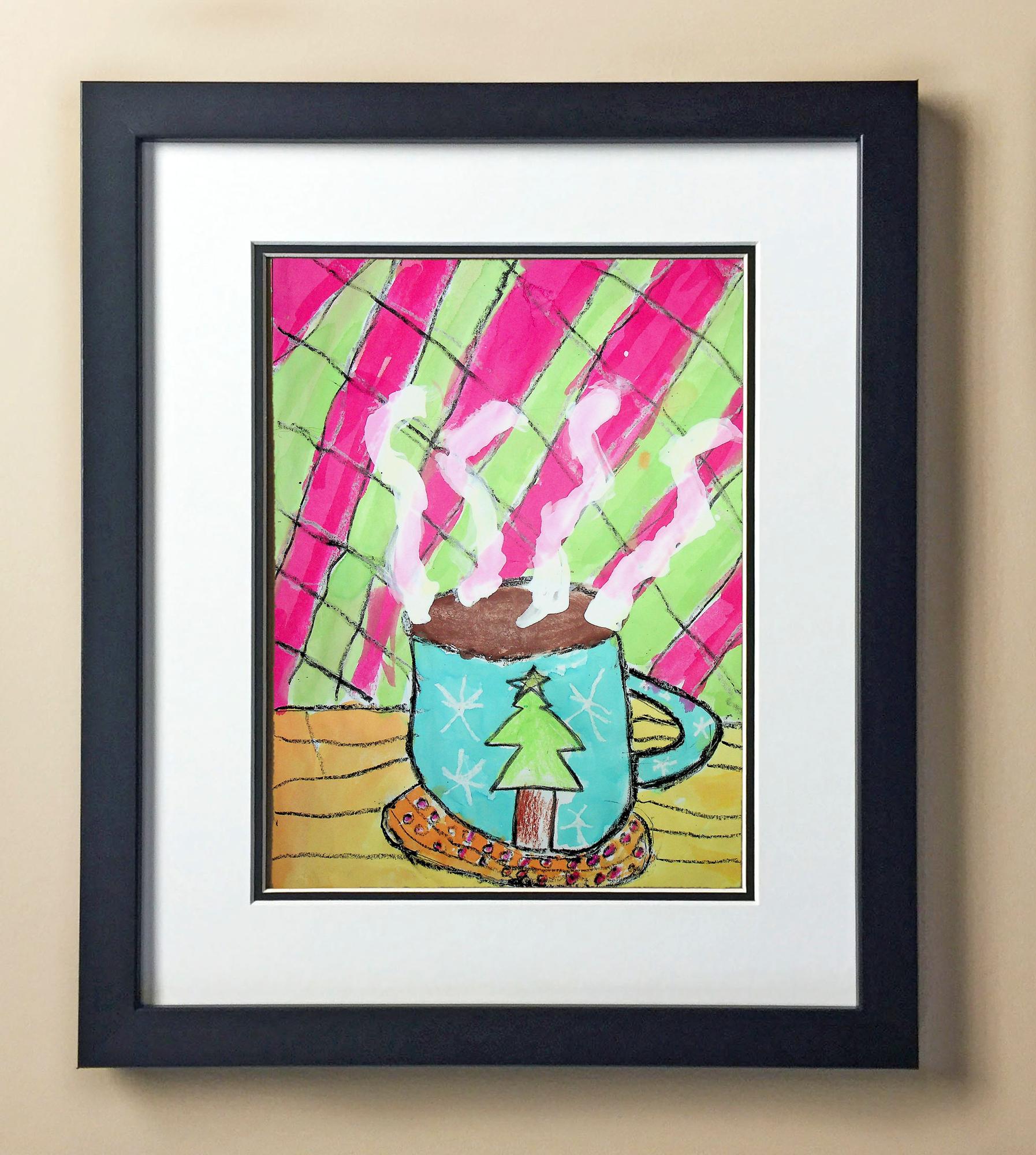Included with the purchase is the Students Artwork, Frame, double matboard, shatter proof plexiglass, and a ready to hang backerboard with turnbuttons