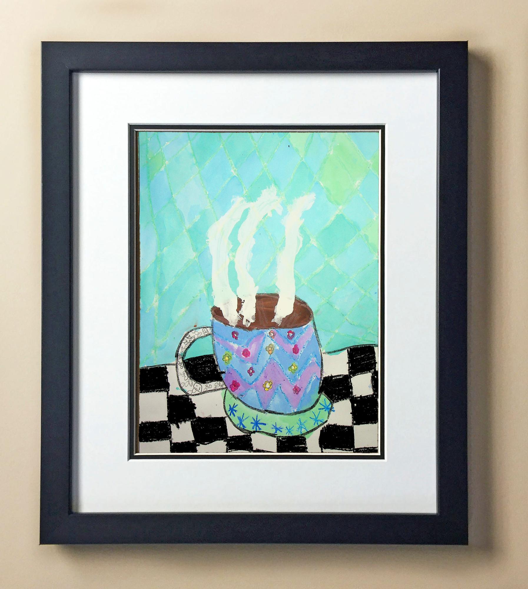 Included with the purchase is the Students Artwork, Frame, double matboard, shatter proof plexiglass, and a ready to hang backerboard with turnbuttons