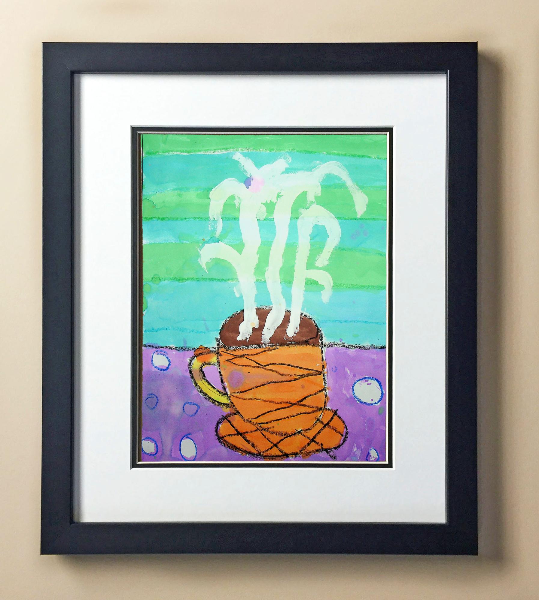 Included with the purchase is the Students Artwork, Frame, double matboard, shatter proof plexiglass, and a ready to hang backerboard with turnbuttons