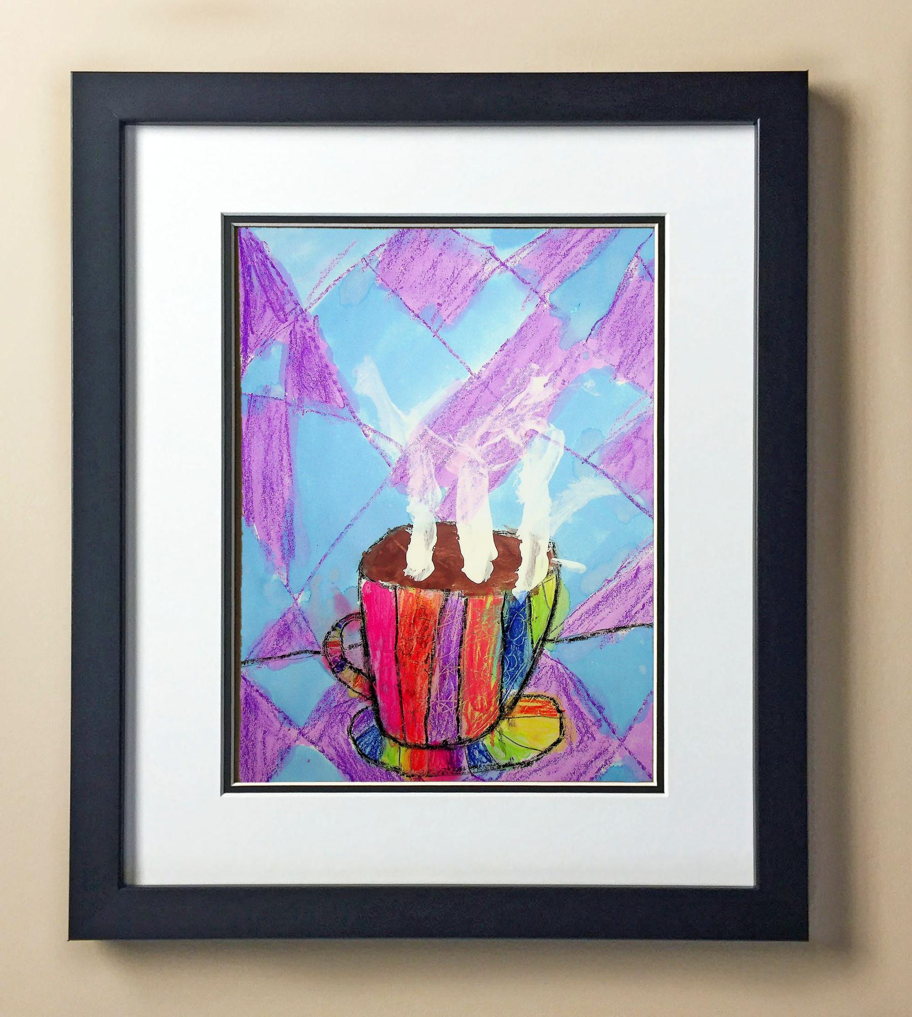 Included with the purchase is the Students Artwork, Frame, double matboard, shatter proof plexiglass, and a ready to hang backerboard with turnbuttons