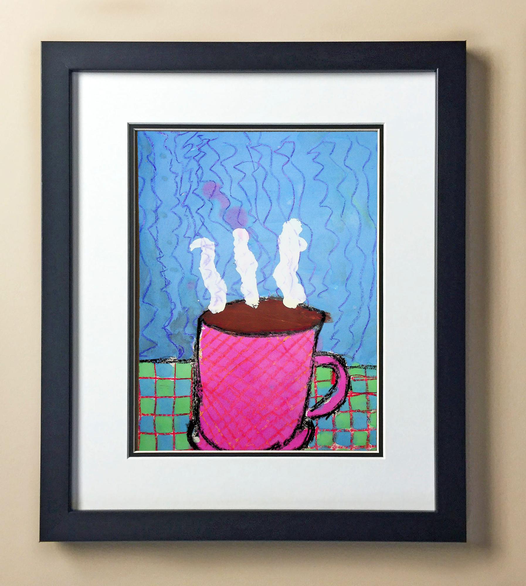 Included with the purchase is the Students Artwork, Frame, double matboard, shatter proof plexiglass, and a ready to hang backerboard with turnbuttons