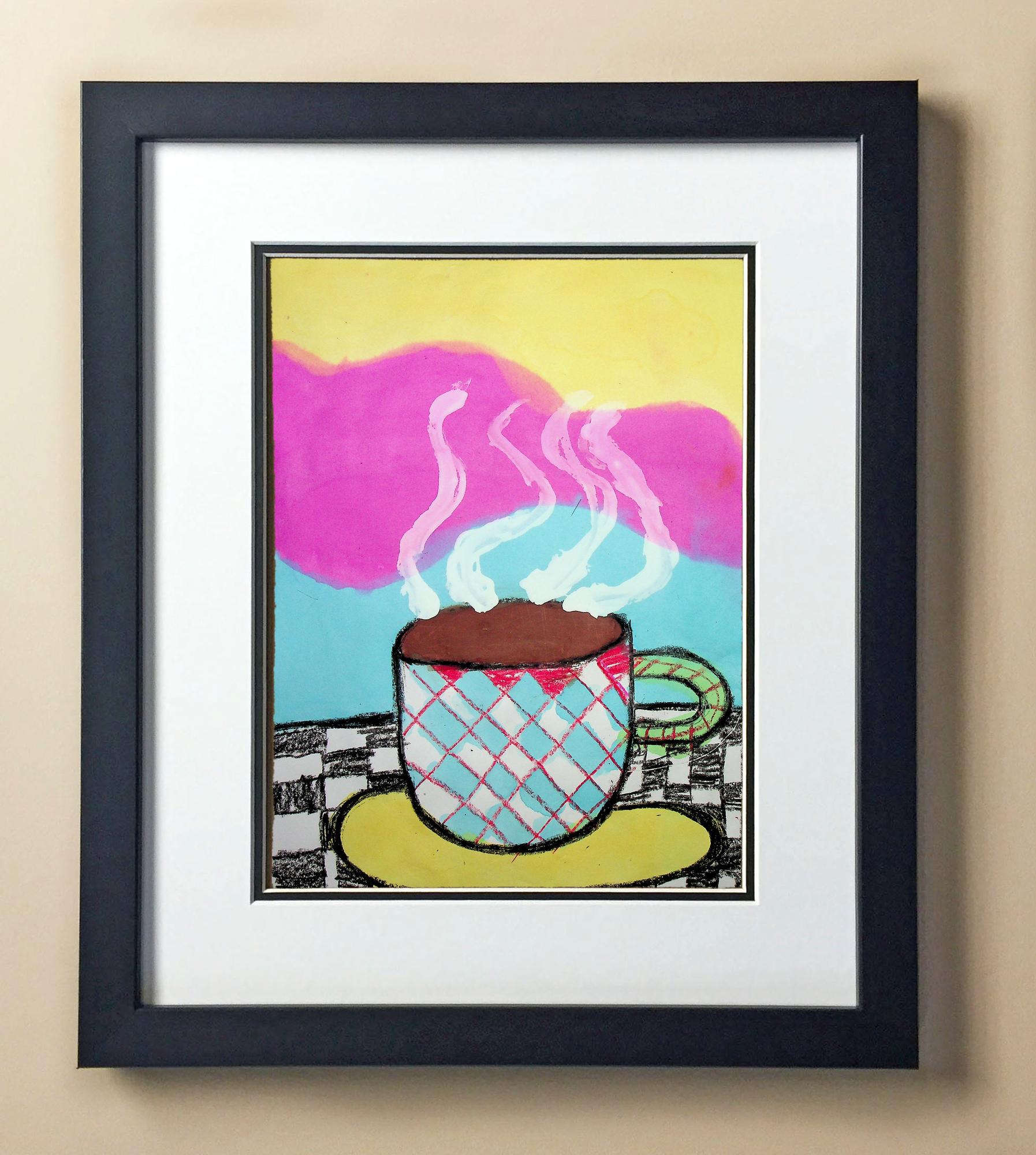 Included with the purchase is the Students Artwork, Frame, double matboard, shatter proof plexiglass, and a ready to hang backerboard with turnbuttons