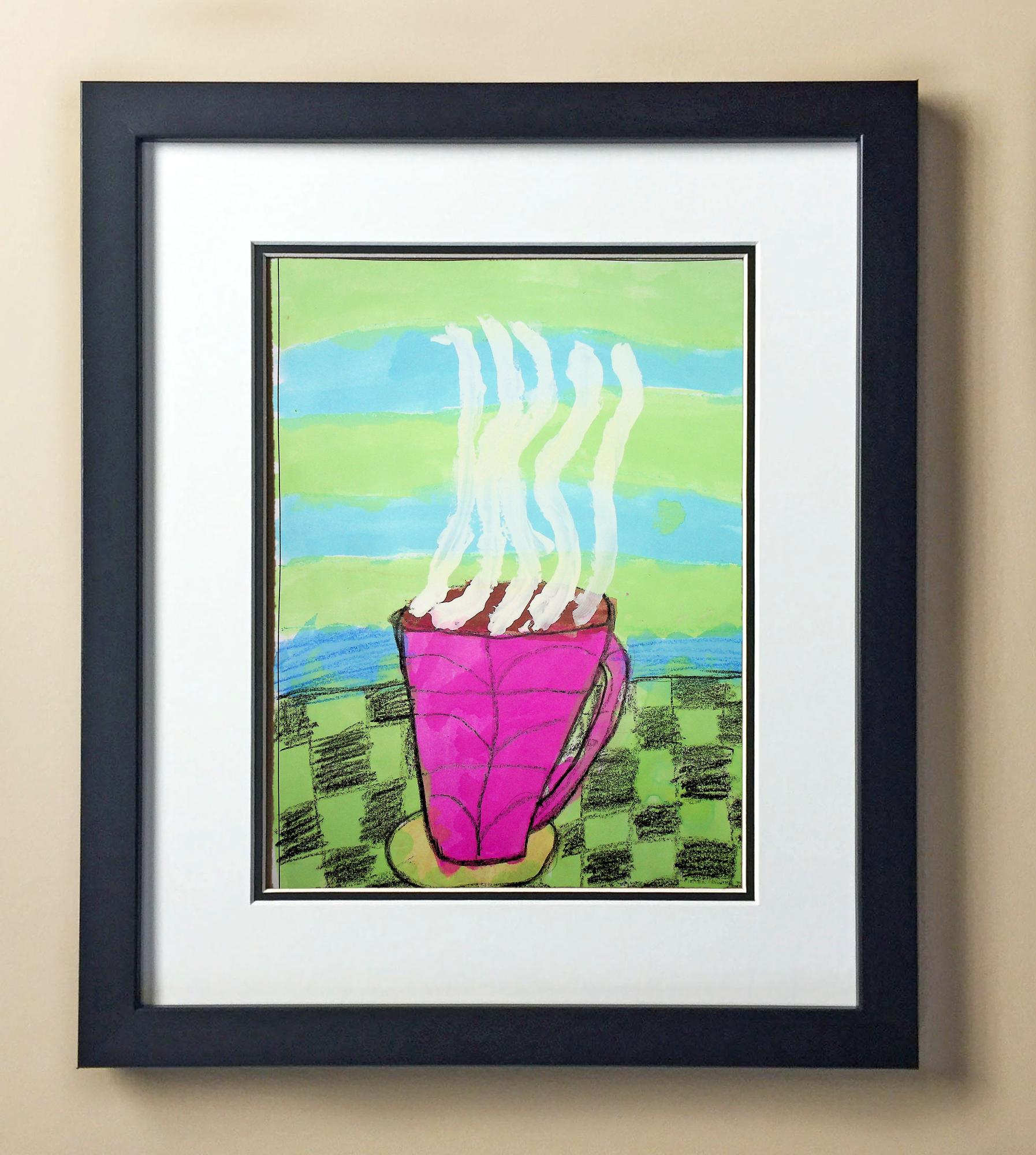 Included with the purchase is the Students Artwork, Frame, double matboard, shatter proof plexiglass, and a ready to hang backerboard with turnbuttons