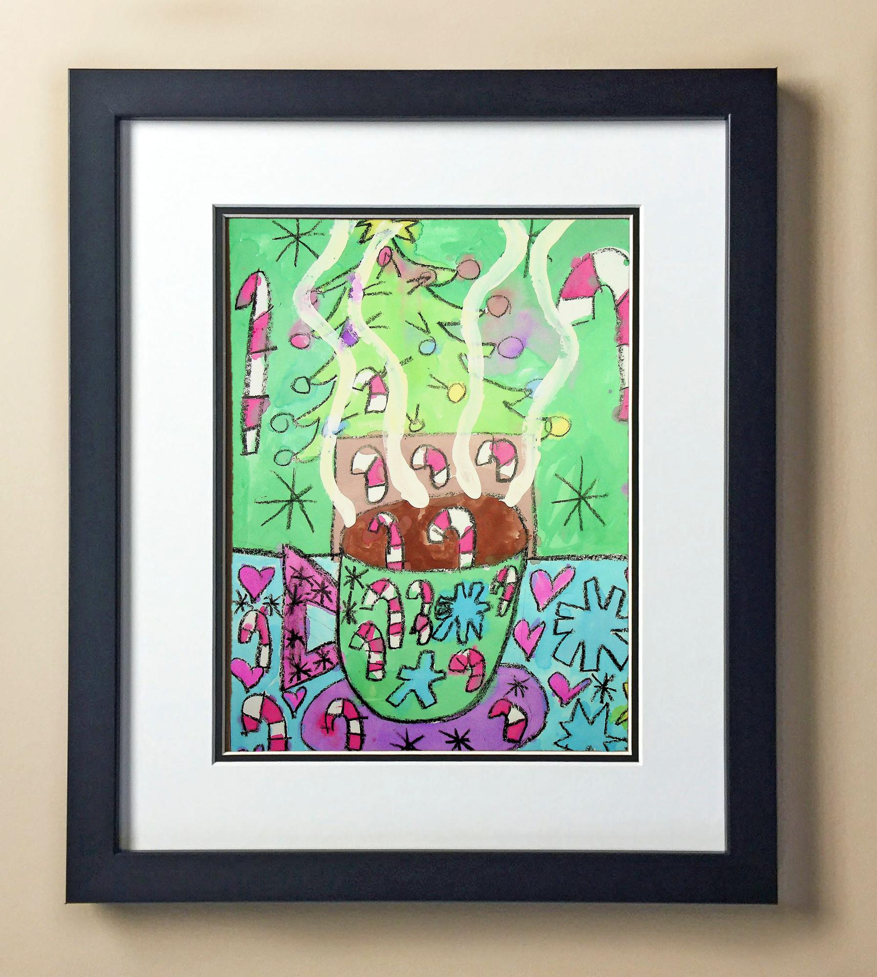 Included with the purchase is the Students Artwork, Frame, double matboard, shatter proof plexiglass, and a ready to hang backerboard with turnbuttons