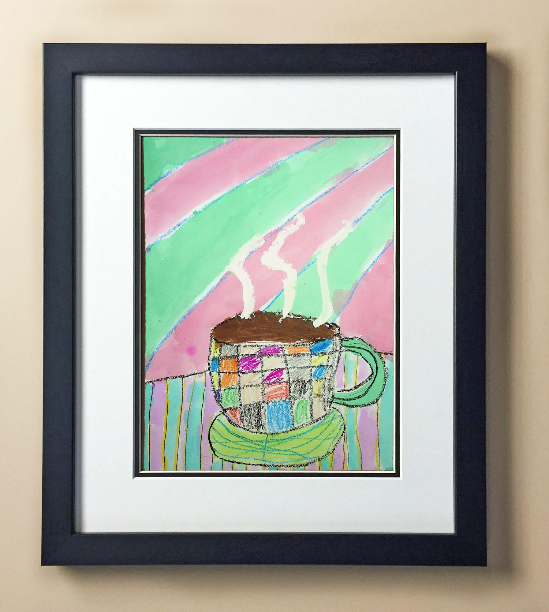 Included with the purchase is the Students Artwork, Frame, double matboard, shatter proof plexiglass, and a ready to hang backerboard with turnbuttons