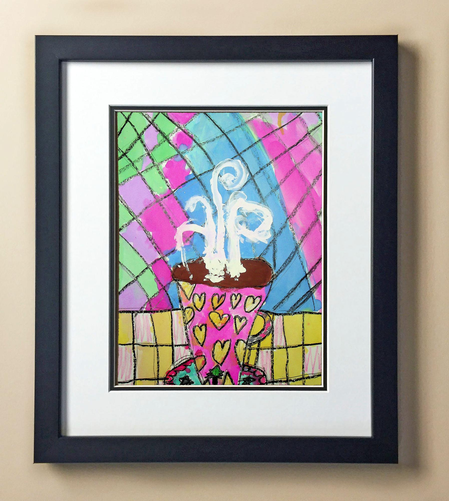 Included with the purchase is the Students Artwork, Frame, double matboard, shatter proof plexiglass, and a ready to hang backerboard with turnbuttons