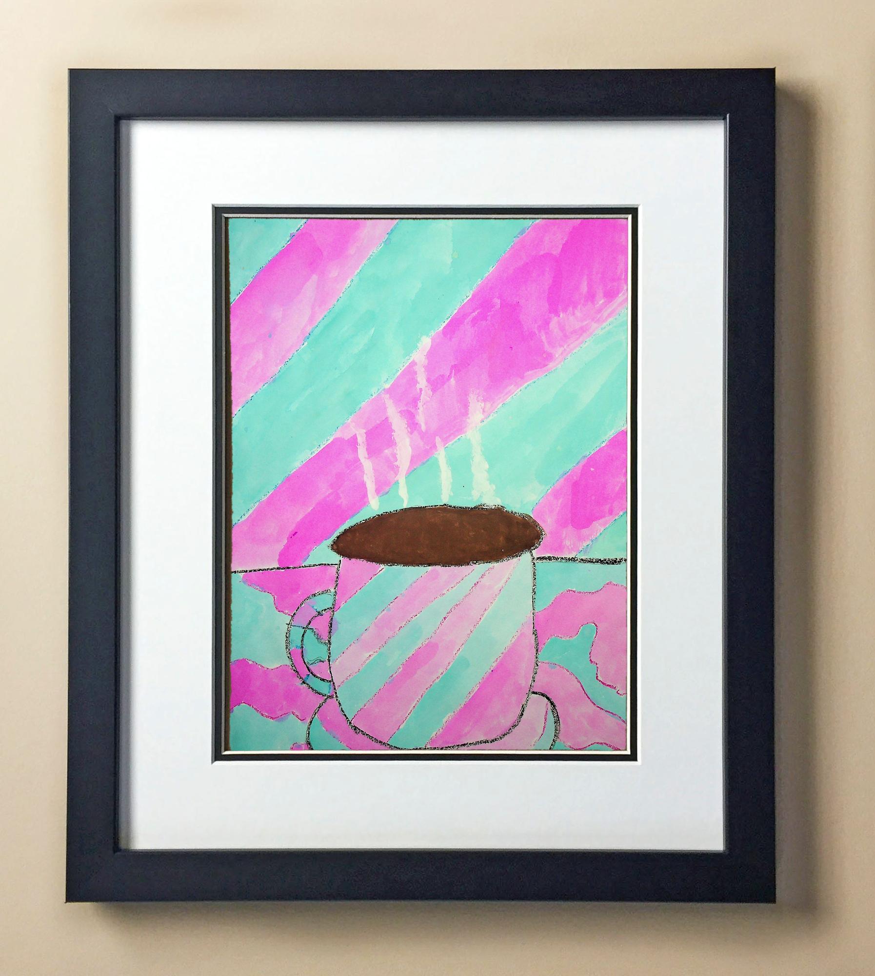 Included with the purchase is the Students Artwork, Frame, double matboard, shatter proof plexiglass, and a ready to hang backerboard with turnbuttons