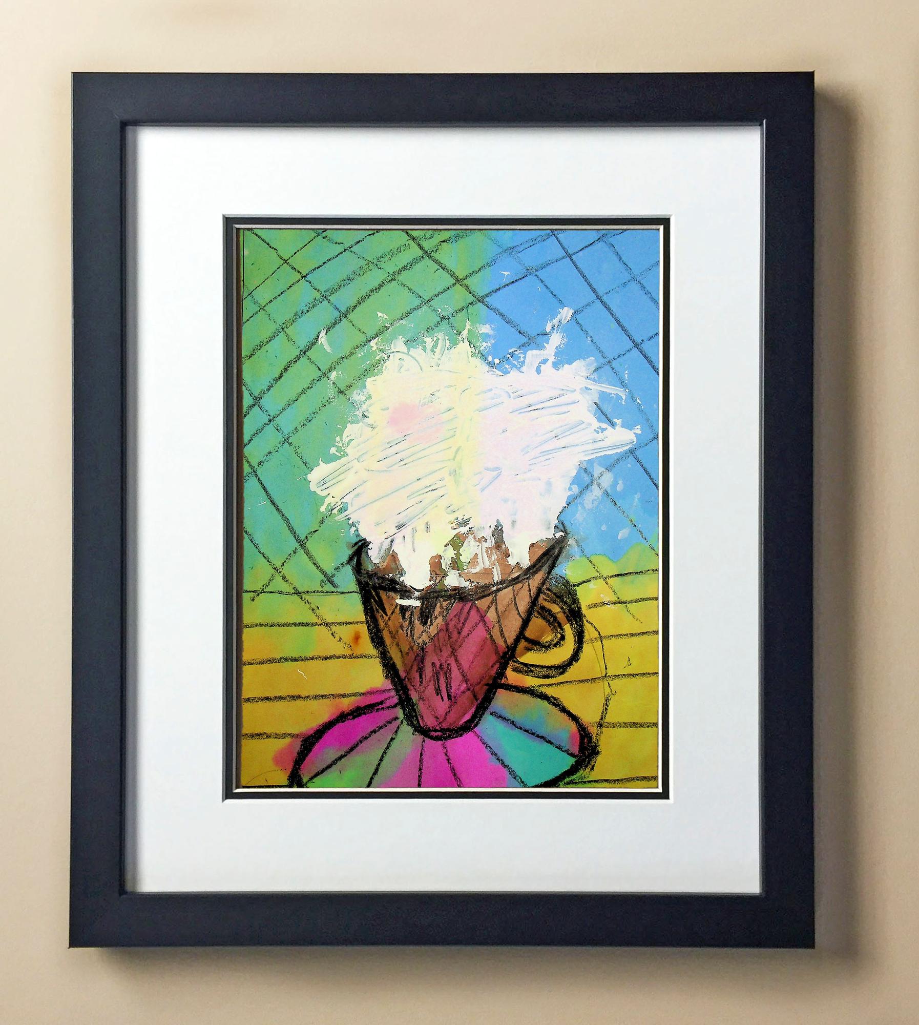 Included with the purchase is the Students Artwork, Frame, double matboard, shatter proof plexiglass, and a ready to hang backerboard with turnbuttons
