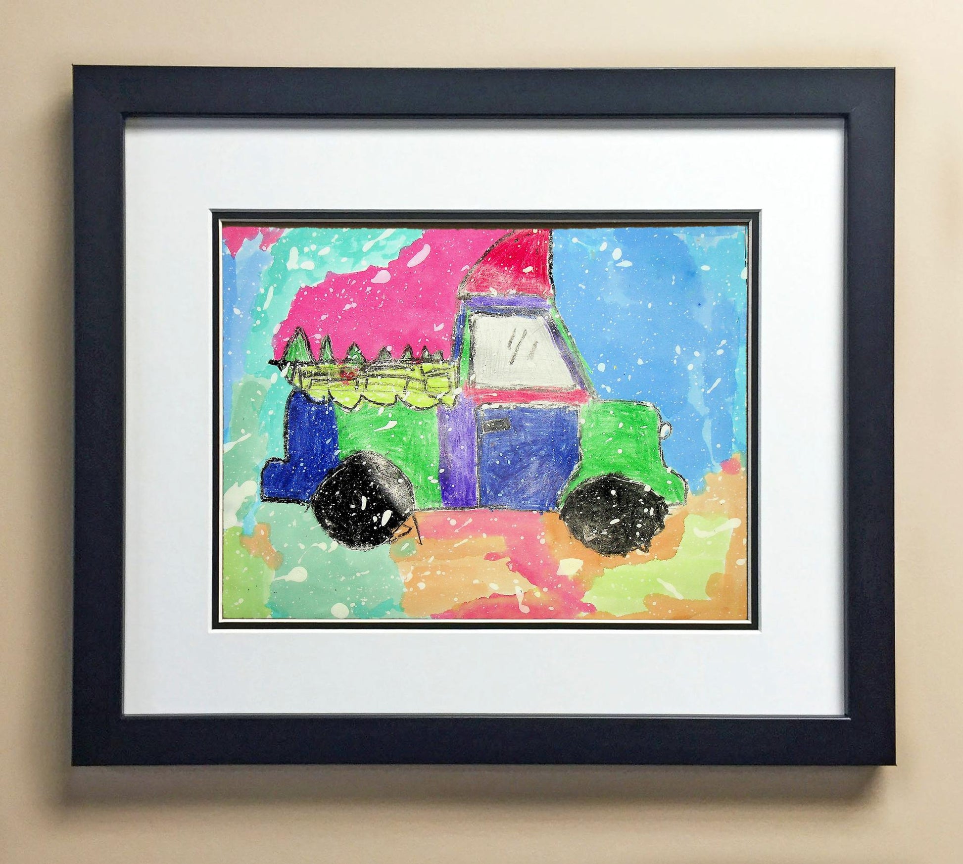 Included with the purchase is the Students Artwork, Frame, double matboard, shatter proof plexiglass, and a ready to hang backerboard with turnbuttons