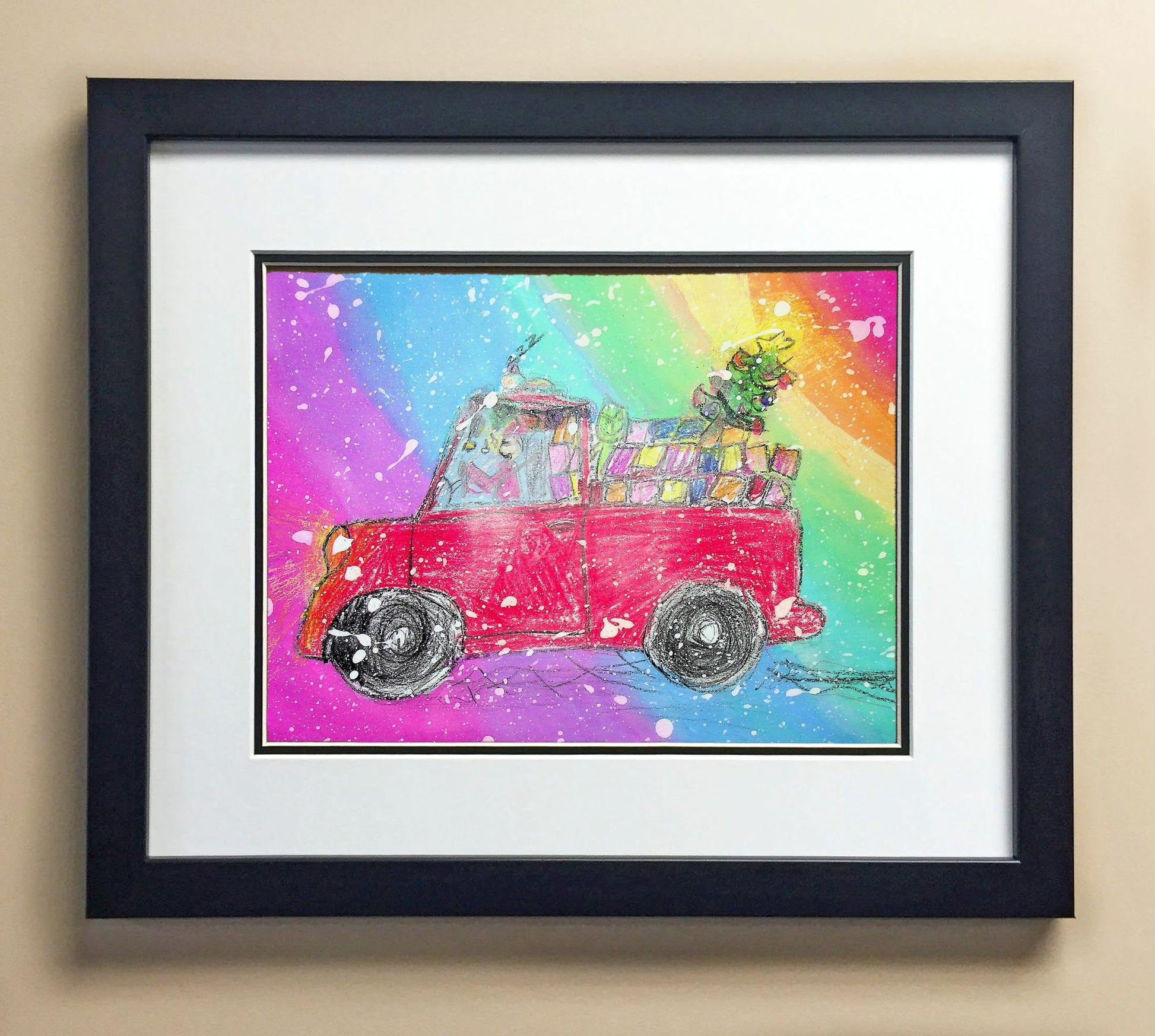 Included with the purchase is the Students Artwork, Frame, double matboard, shatter proof plexiglass, and a ready to hang backerboard with turnbuttons