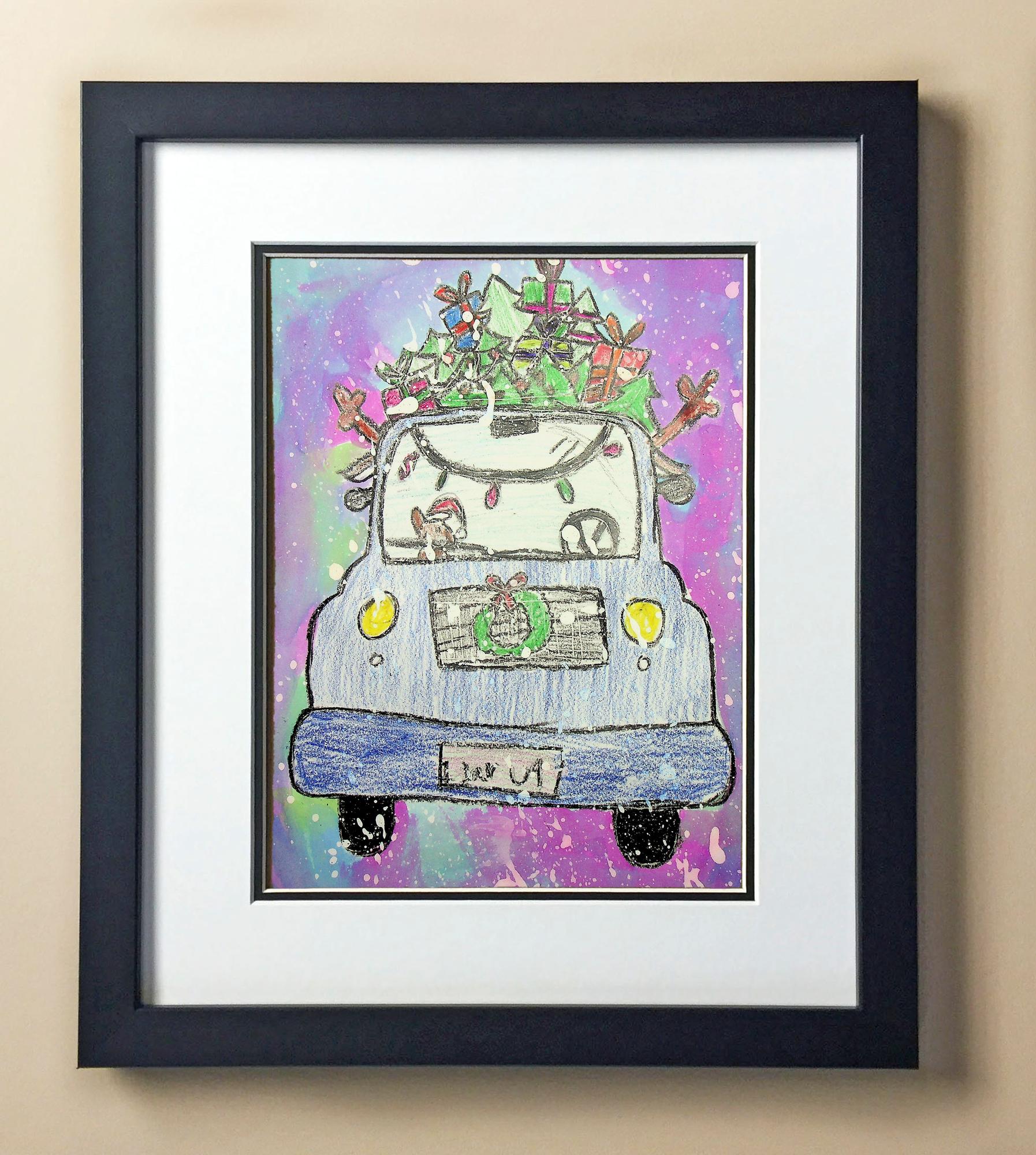 Included with the purchase is the Students Artwork, Frame, double matboard, shatter proof plexiglass, and a ready to hang backerboard with turnbuttons