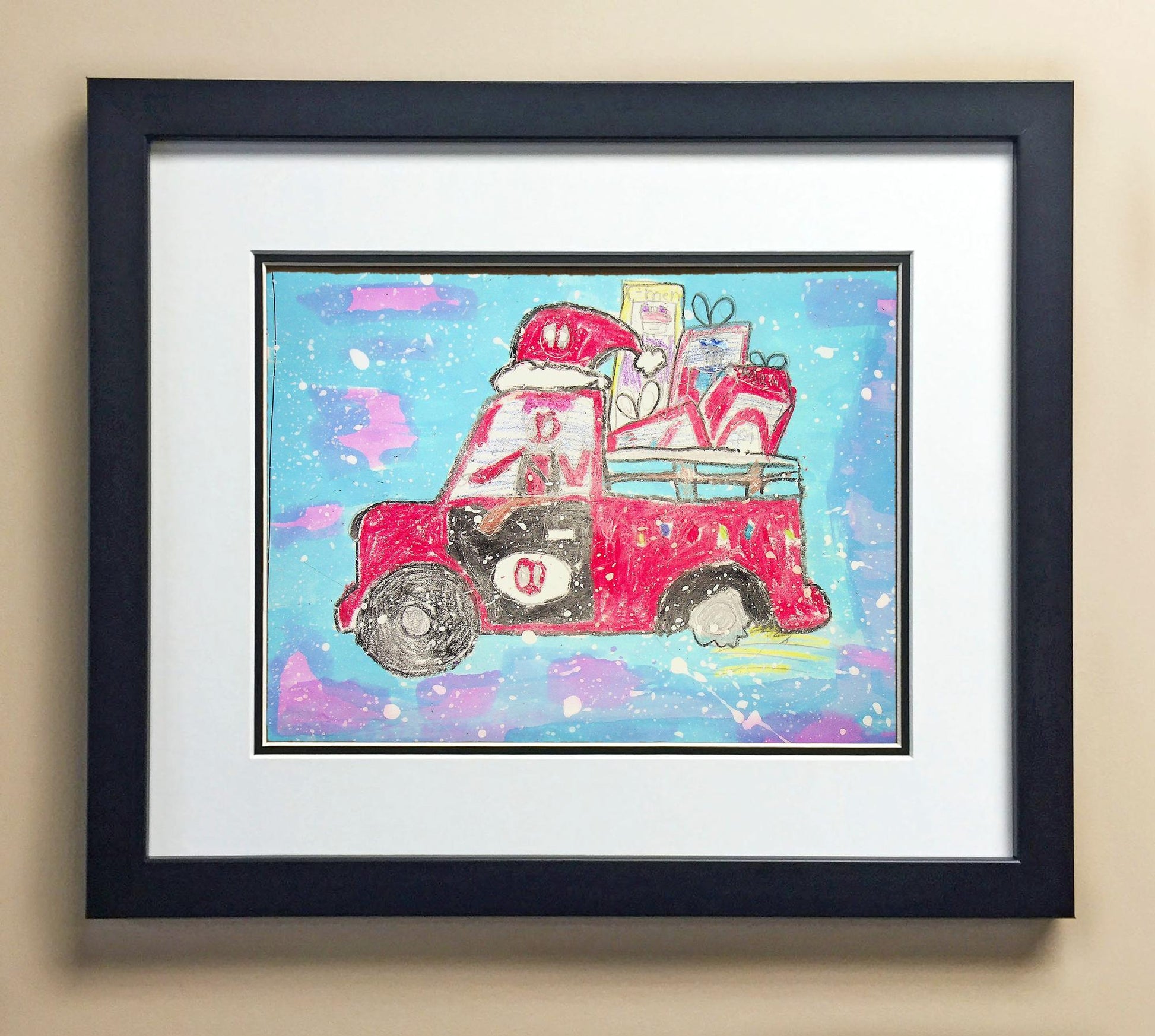Included with the purchase is the Students Artwork, Frame, double matboard, shatter proof plexiglass, and a ready to hang backerboard with turnbuttons