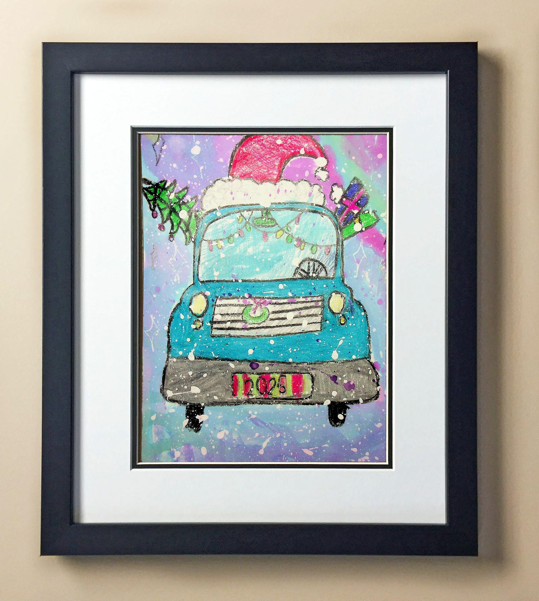 Included with the purchase is the Students Artwork, Frame, double matboard, shatter proof plexiglass, and a ready to hang backerboard with turnbuttons