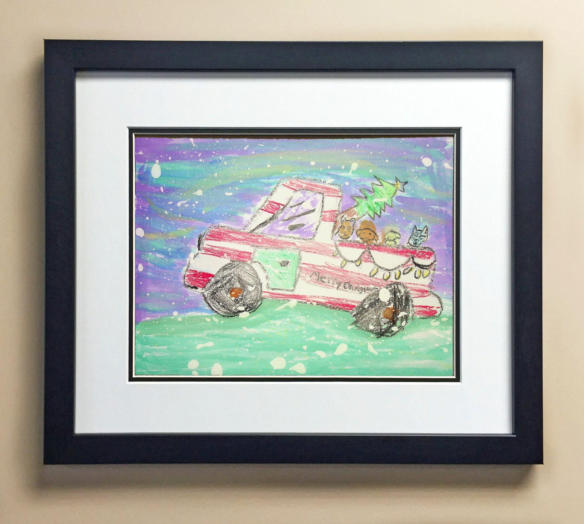 Included with the purchase is the Students Artwork, Frame, double matboard, shatter proof plexiglass, and a ready to hang backerboard with turnbuttons