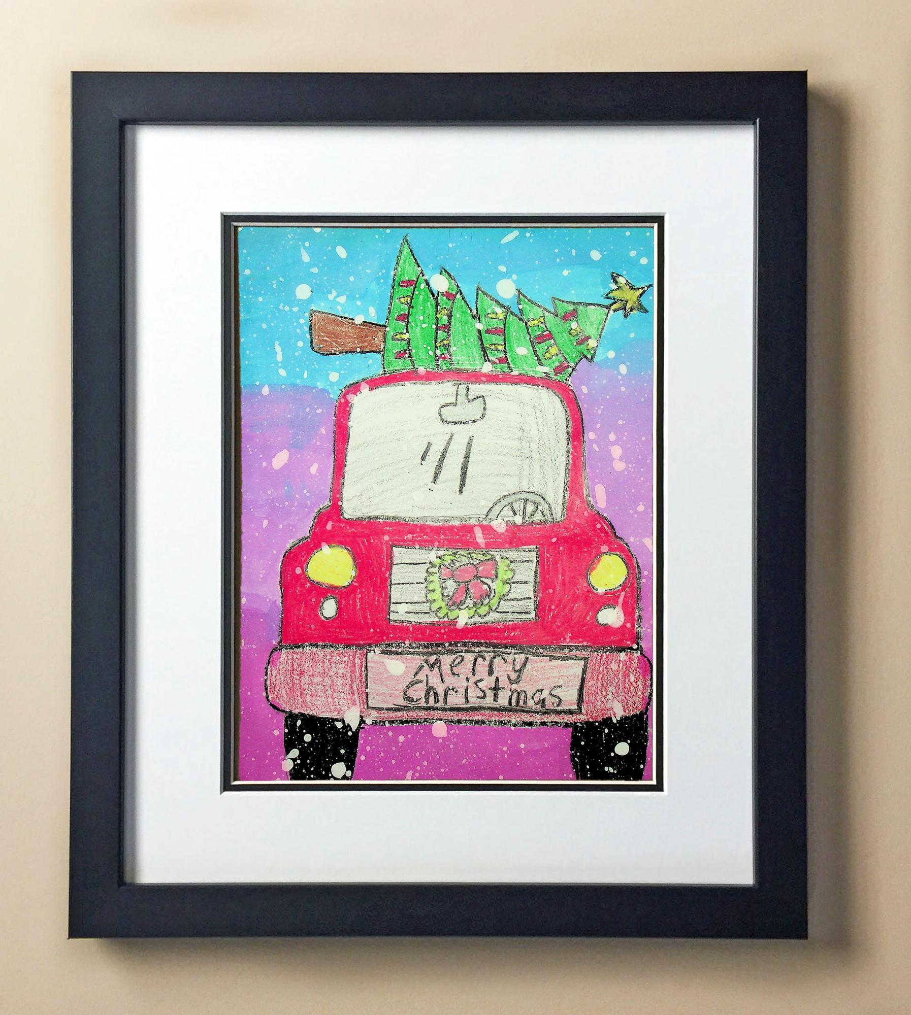 Included with the purchase is the Students Artwork, Frame, double matboard, shatter proof plexiglass, and a ready to hang backerboard with turnbuttons