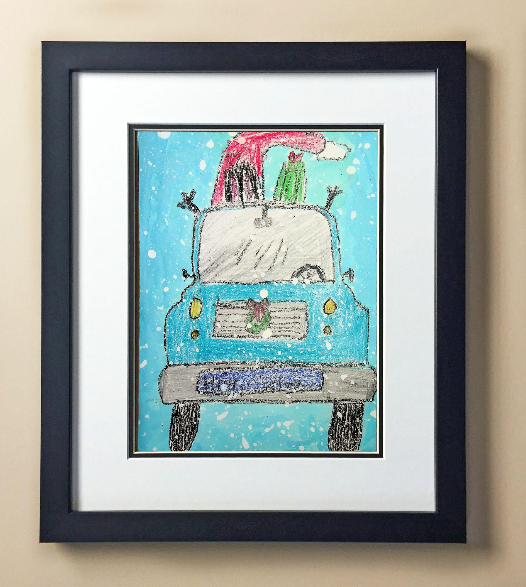 Included with the purchase is the Students Artwork, Frame, double matboard, shatter proof plexiglass, and a ready to hang backerboard with turnbuttons